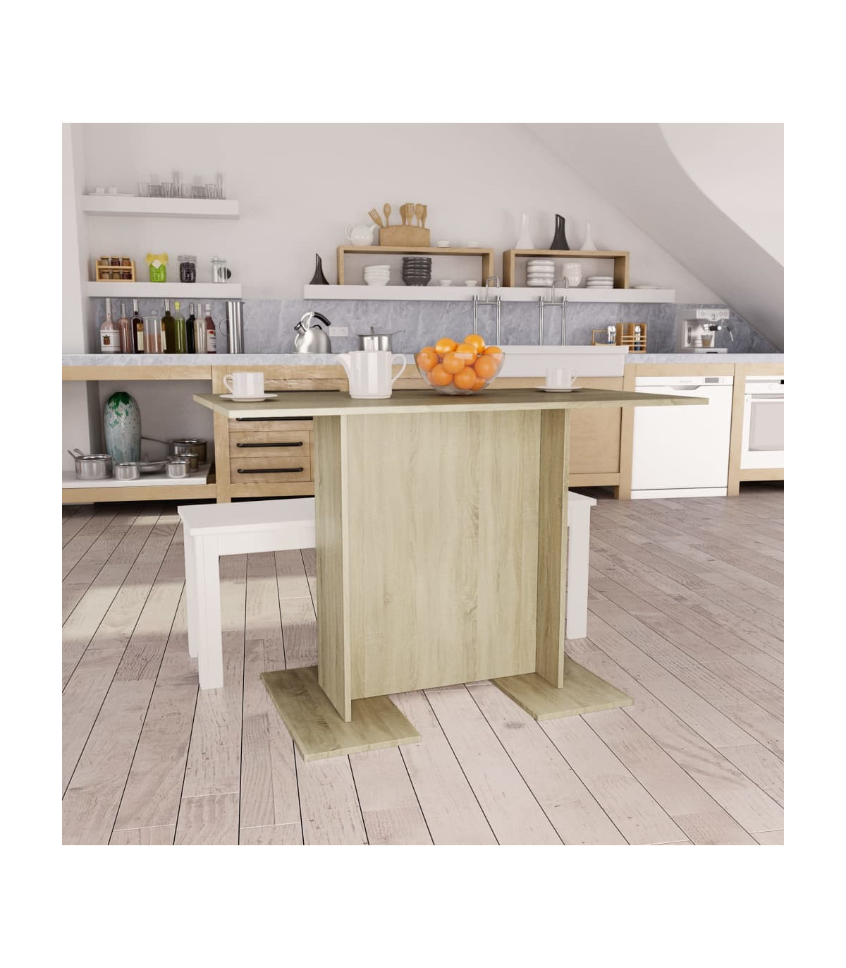 Bring an air of clean minimalist style to your dining area with this distinctive dining table! The simple elegance of this dining table will make everyday dinners special. Made of strong engineered wood with a wide, rectangular base, this dinner table is exceedingly stable and durable. Whether you're inviting guests over for a weekend family dinner or a neighbourhood potluck, this beautiful dining table will come in very handy. In addition, the dining table is also very easy to clean with just a damp cloth.