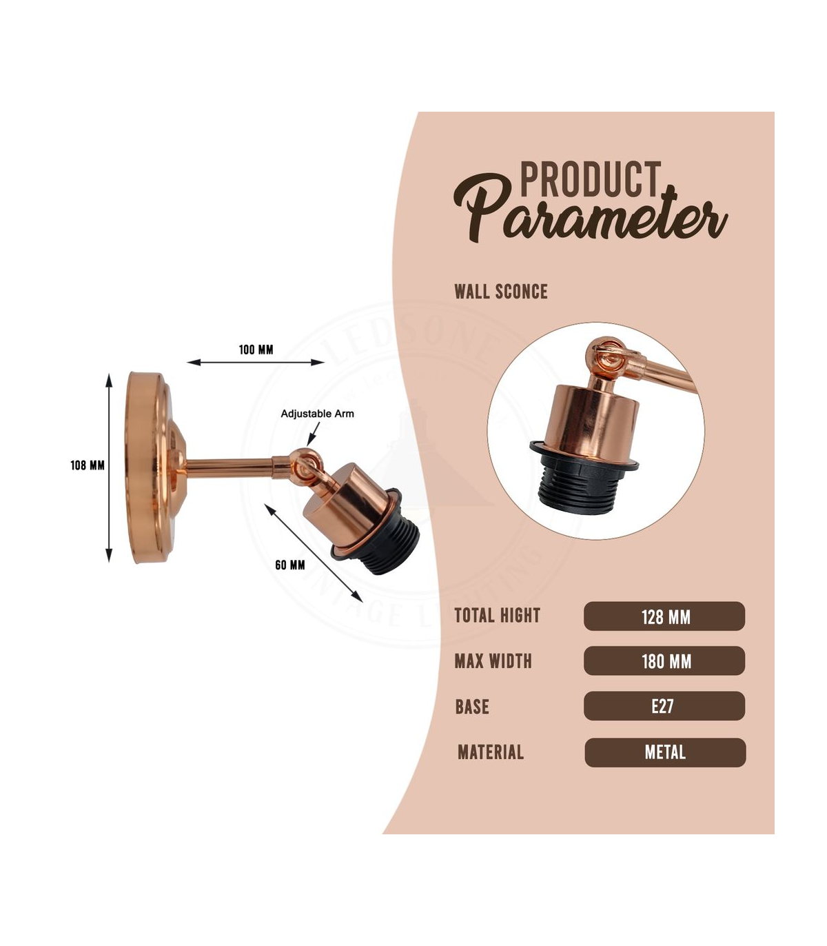 Vintage Industrial Rose Gold Retro Wall light Sturdy Metal Lamp Shade Lights Classic Style Electroplated Finish E27 lamp