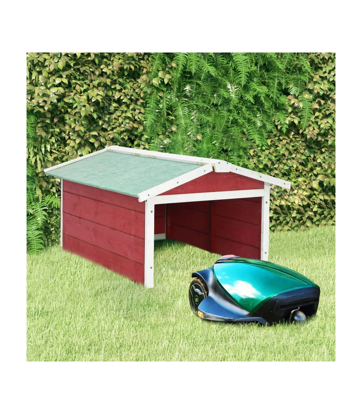 vidaXL Robotic Lawn Mower Garage 72x87x50 cm Red and White Firwood