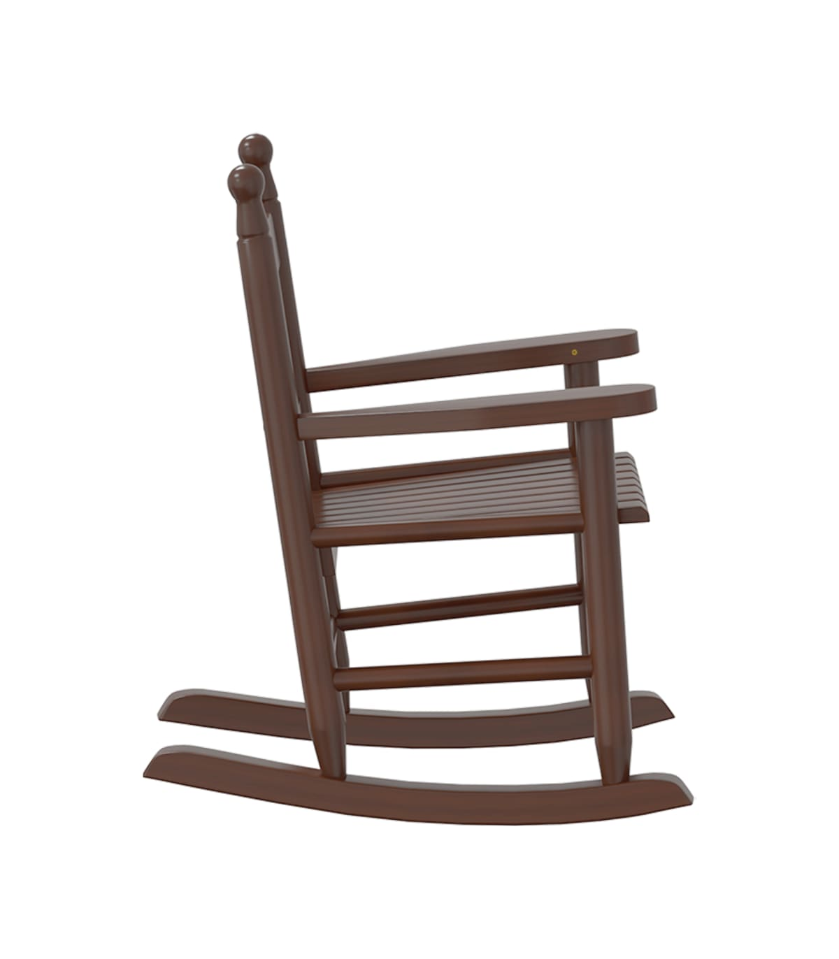 A comfortable rocking chair to accompany the child through a leisurely and peaceful time. Long-lasting and comfortable: The rocking chair features a sturdy frame made from poplar wood, ensuring durability. Its smooth, gentle rocking motion provides a calming effect, allowing your kids to relax comfortably.Easy to clean: This rocking chair has waterproof paint, making it water-resistant, easy to clean, and easy to maintain.Safety: The special chair foot angle and anti-dumping design obtained from years of experience protect your child from the risk of overturning.Slatted design: The rocking chair features a slatted design that allows water to flow and ventilate.Wide applications: The versatile design of the rocking chair allows it to be placed anywhere from a covered porch to a patio, garden, balcony, or indoors in the living room, providing your child with a comfortable place to rest and play.