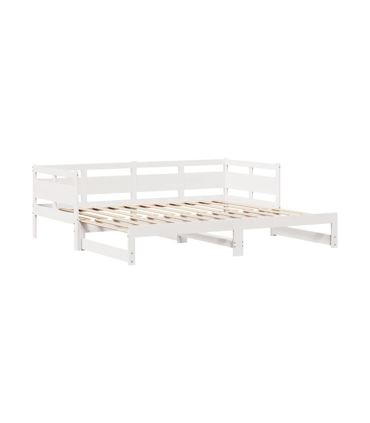 This 2-in-1 daybed with trundle, serving as both a sofa and bed, makes a practical and eye-catching addition to your living room or bedroom. Versatile daybed: The sofa bed functions as a sofa during the day and easily converts into a double bed at night by pulling out the trundle, providing a convenient solution for hosting guests and maximising space.Stable and long-lasting frame: Solid pinewood is known for its strength and durability. Its straight grains and distinctive knots contribute to its rustic charm.Slats for optimal support: The couch bed is complete with slats to offer essential support and breathability to your mattress.Ample storage space: This guest bed has two drawers that provide ample space for storing your clothes, socks, toys, cushions, etc. Good to know:Mattresses are not included with this bed. We do offer a various selection of mattresses. You can check our shop for matching mattresses.