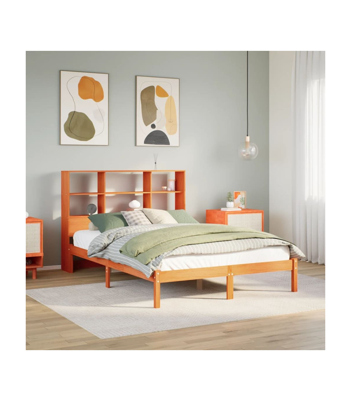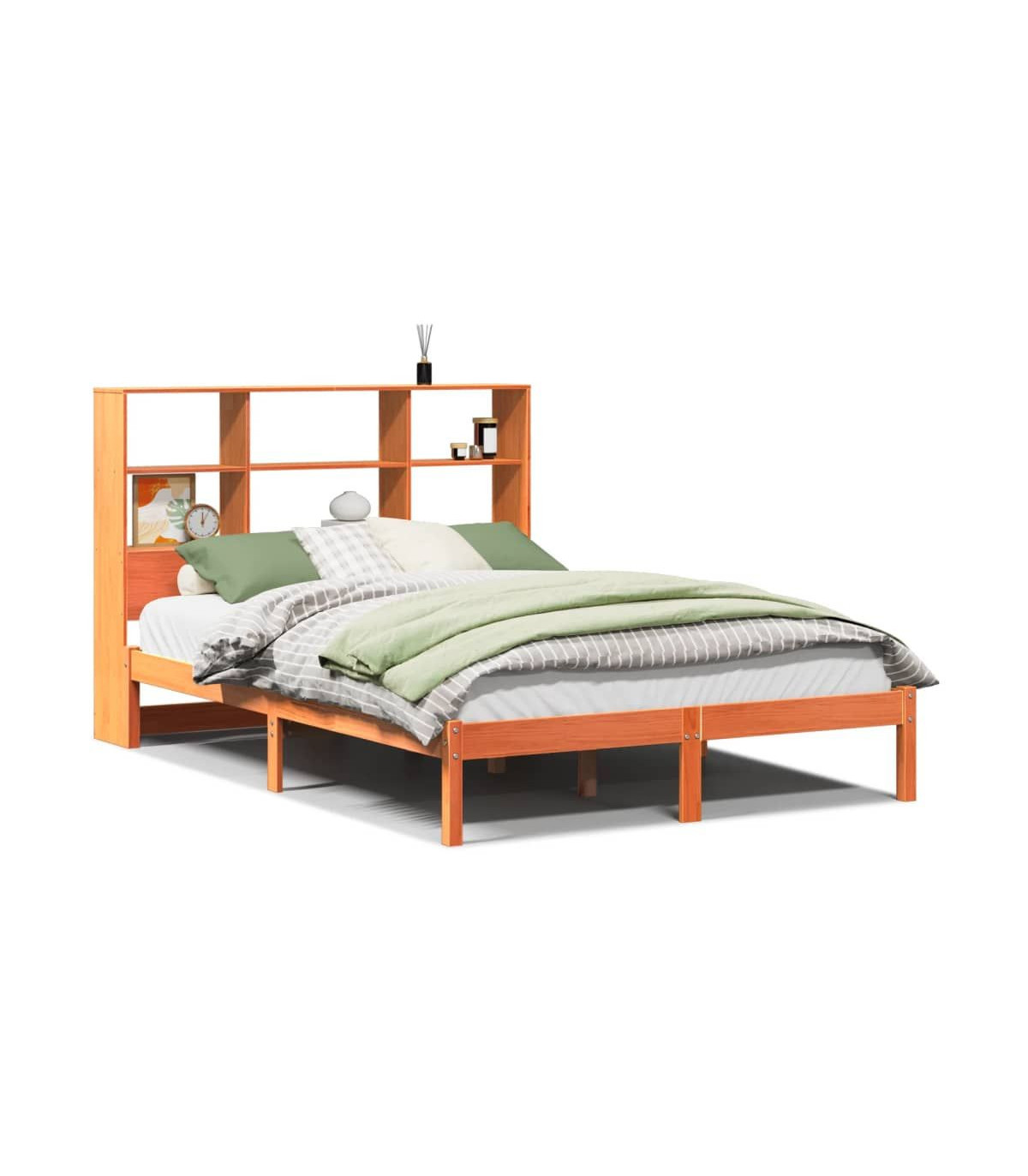 vidaXL Bookcase Bed without Mattress Wax Brown 135x190 cm Double Solid Wood Pine