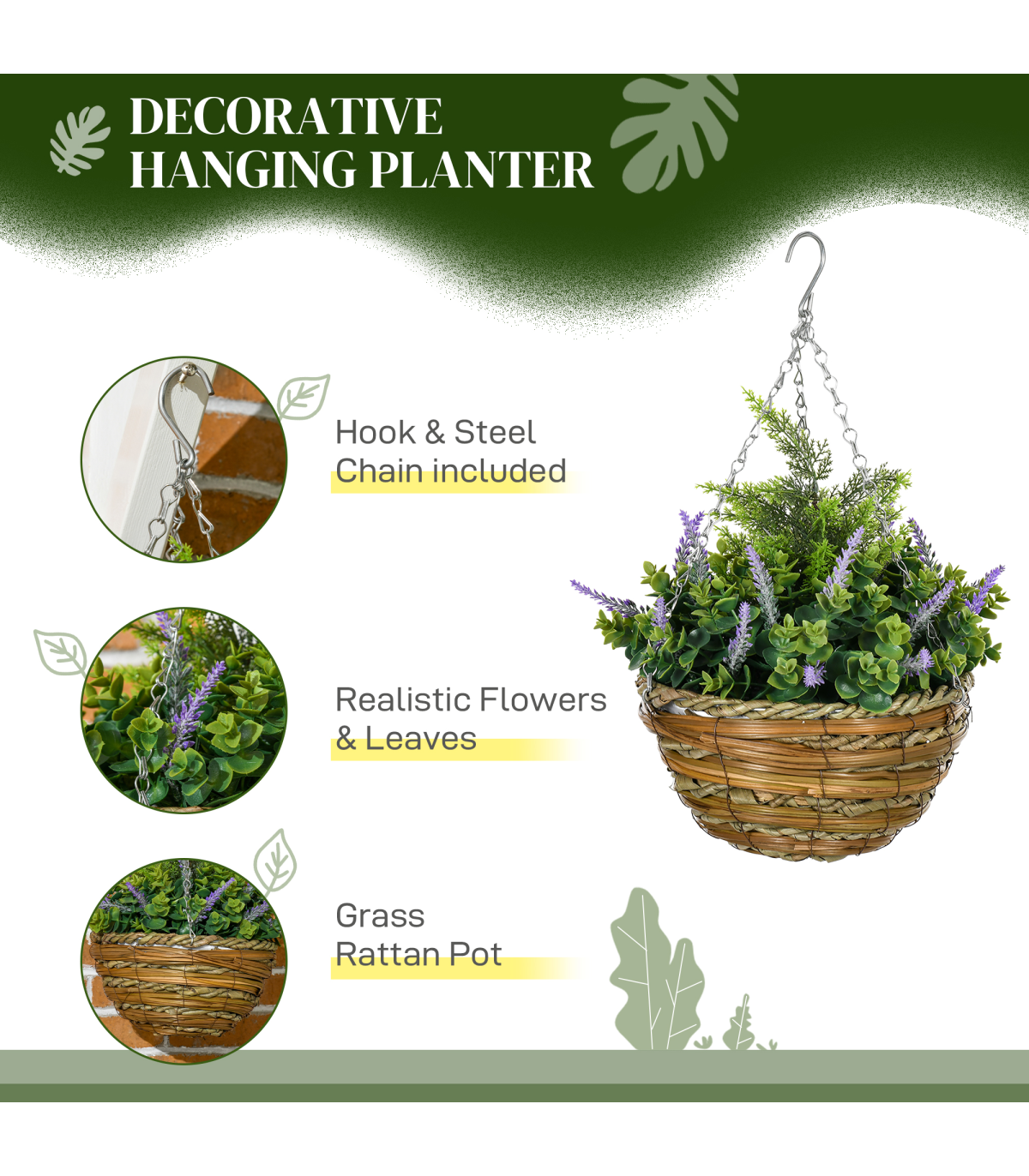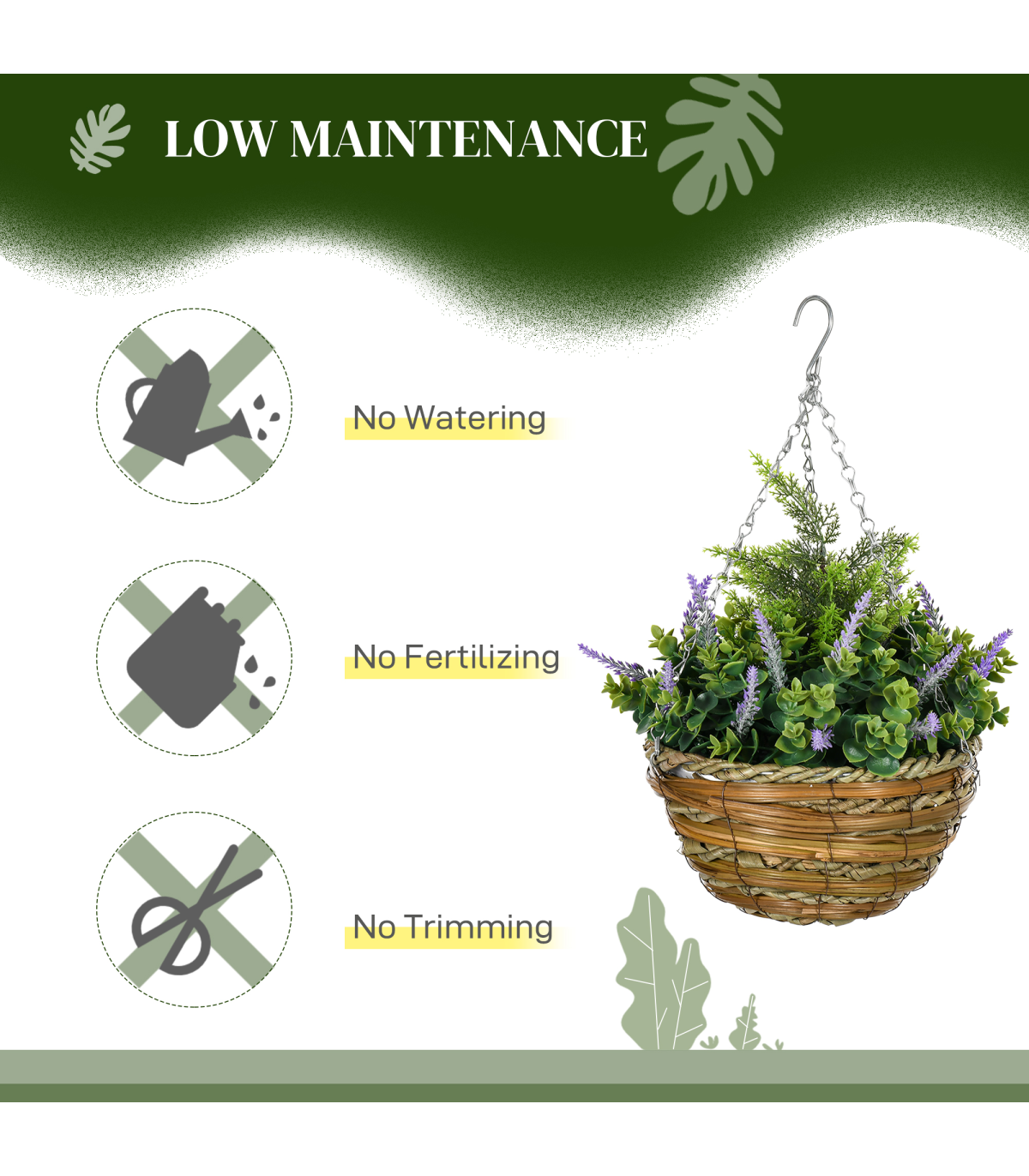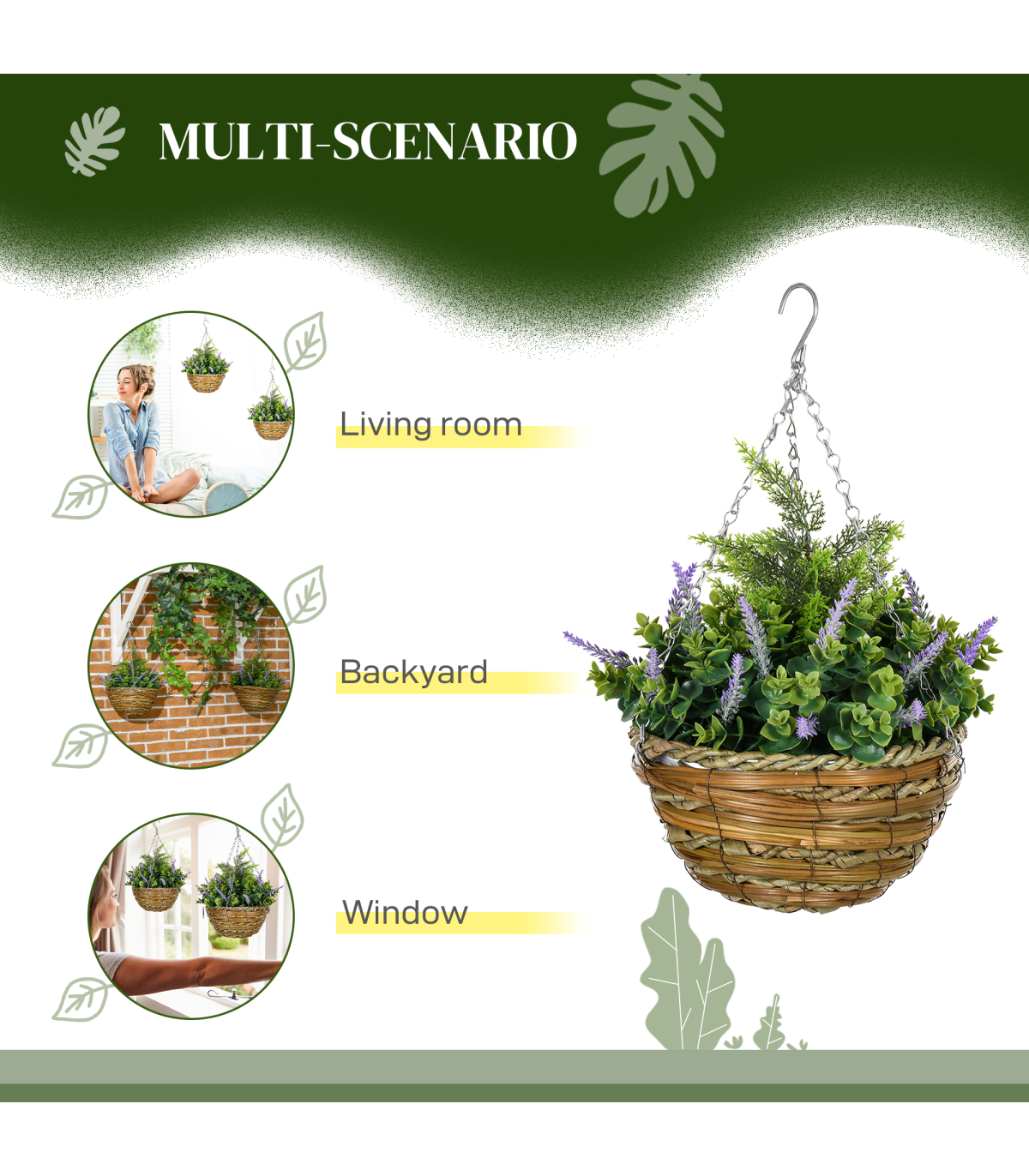 ● Comes with cement-filled wicker basket. Basket with metal chain and hook to hang easily