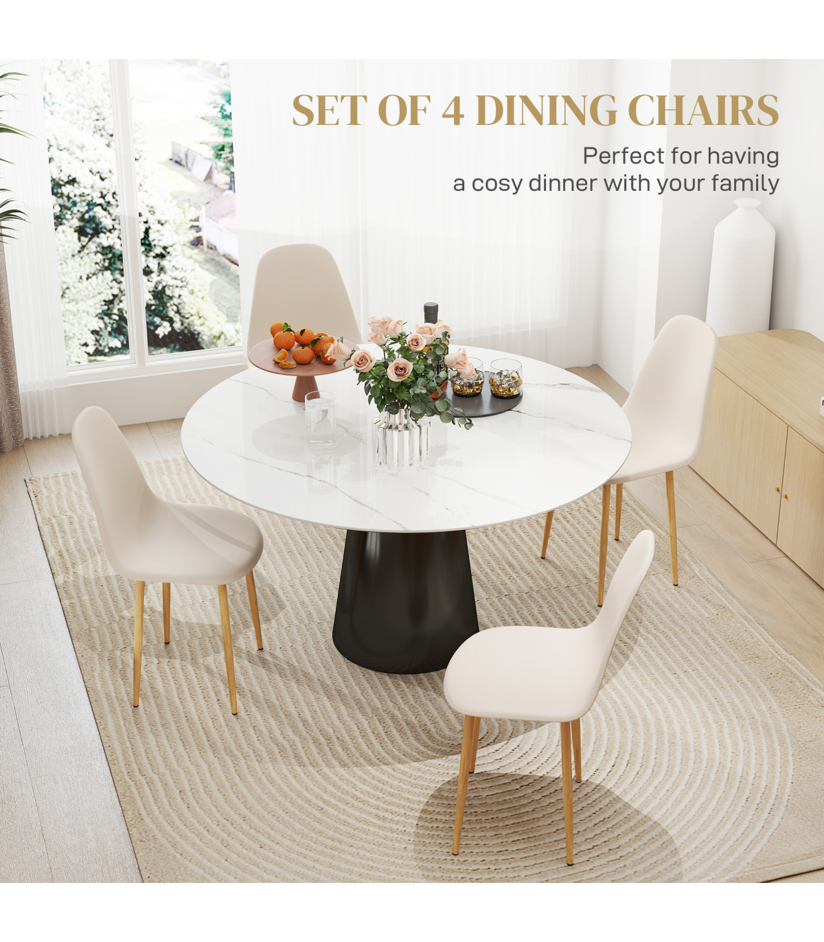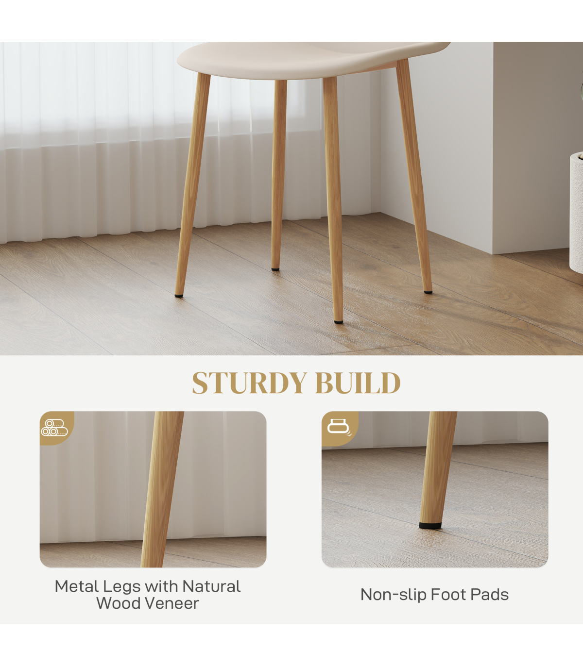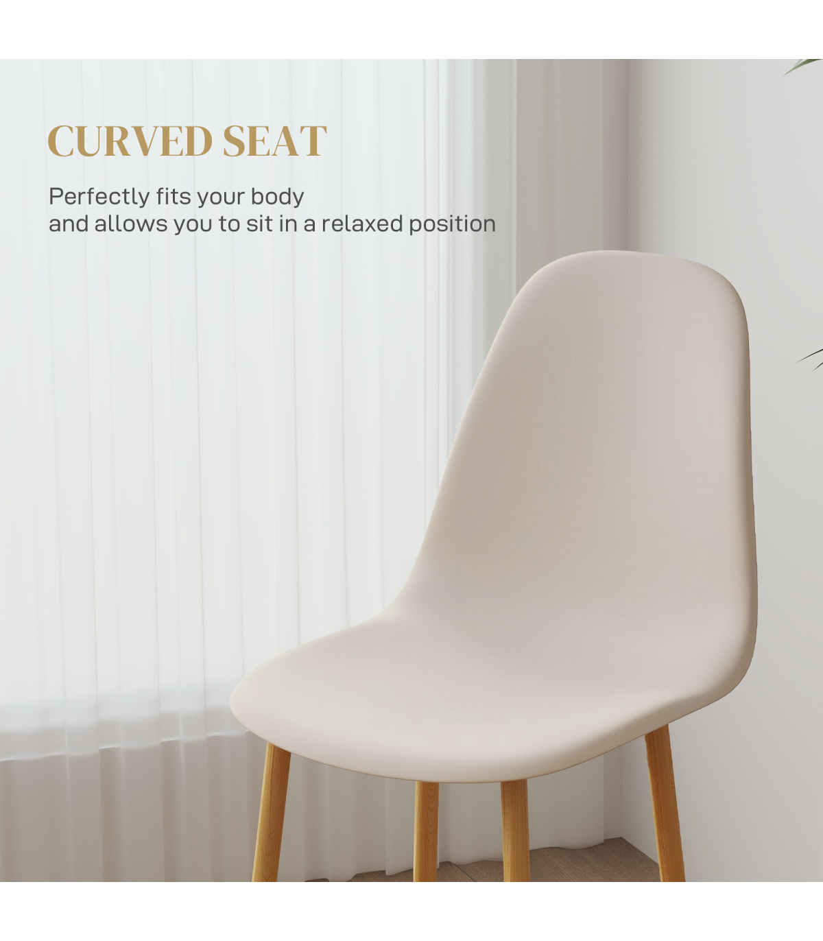 Give your home a makeover with these 4-piece modern dining chairs set from HOMCOM! These versatile living room chair serve as stylish additions to your dining area or as accent chair in the bedroom, home office, living room and more. Relax in the curved seat for support and comfort. This modern dining set has solid steel legs to give it adequate stability for reliable daily use.