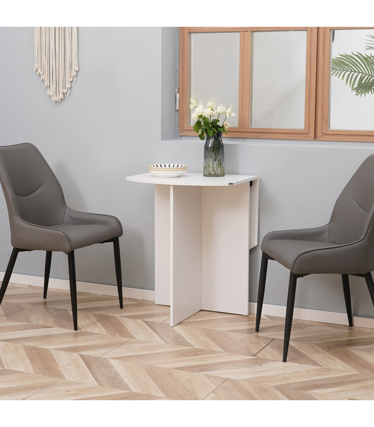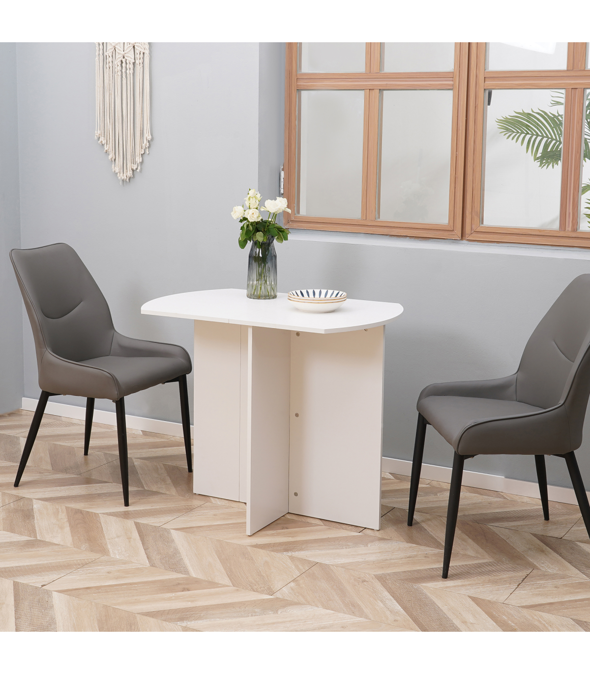 Space-saving dining comes with this HOMCOM drop leaf table. A side lifts from the bottom to provide extra surface room for up to four people, whilst dropping back down into a compact size - it's great for smaller rooms. Made from particle board this is a solid piece suitable for everyday use, finished in a wood effect for a beautifully classic look.
