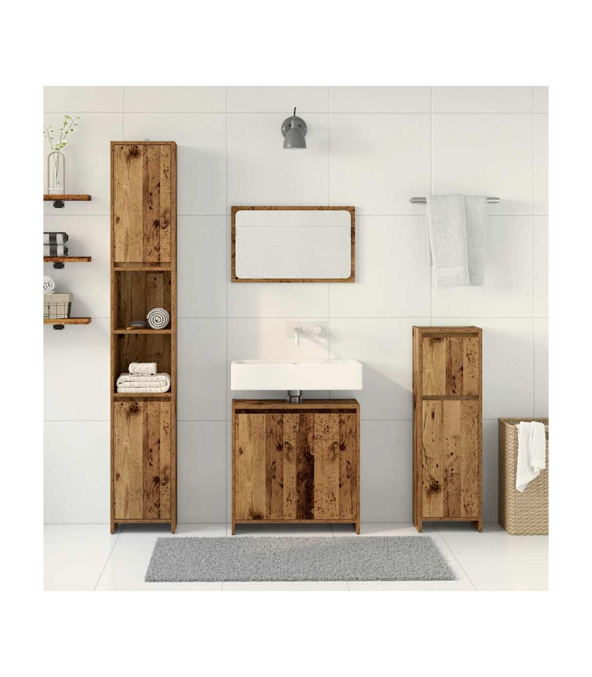 This attractive bathroom cabinet set, with ample storage space, features a stylish yet practical design. Easy-to-clean material: The engineered wood is of exceptional quality with a smooth surface and features strength, stability and resistance to moisture.Ample storage space: The storage space makes this bathroom furniture set easy to keep things organised.Stylish design: The clean lines and sleek design blend into your bathroom perfectly. Warning:In order to prevent overturning, this product must be used with the wall attachment device provided. Note:Screw(s) and plug(s) for inside the wall are not included. Seek and use screw(s) and plug(s) suitable for your walls. If you are uncertain, seek professional advice. Read and follow each step of the instruction carefully.Each product comes with an assembly manual in the box for easy assembly.