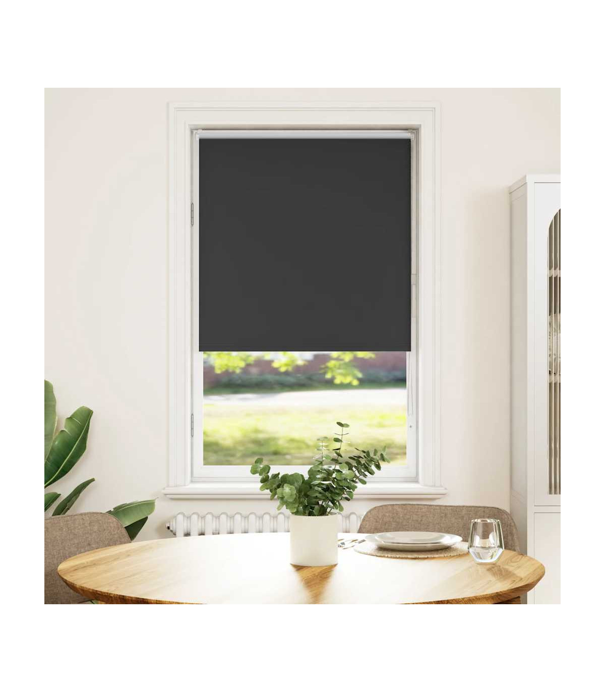Elevate your room's style and functionality with this roller blind, providing privacy, light control, and heat regulation. Durable and low maintenance: Made from 100% polyester, the roller blind is built to last and resist wear and tear. They are also easy to clean, typically requiring light dusting or wiping with a damp cloth.Privacy and light control: Thanks to the blackout design, this roller blind provides privacy and partially blocks direct sunlight so that you can regulate the indoor temperature according to your needs.Multiple mounting methods: You can attach the roller blind to the wall or window with screws or without drilling using clamping brackets, depending on your needs. Clamping brackets for window frame rebate thickness between 1,6 and 2,5 cm.Child safety and adjustability: The roller blind includes a chain connector that makes it easy to adjust the height according to your needs, and it also has a cord clip to add child safety.Wide applications: This versatile roller blind is suitable for homes, offices, cafes, office buildings, and so on. Warning: Keep cords out of the reach of young children. Cords may become wrapped around a child’s neck. Good to know:Before buying blinds, start by measuring your window glass. Just a friendly tip: the fabric is a bit narrower than the total width, including the brackets.To make sure your new blinds provide complete coverage, just add 4,3 cm to the width of the window glass when calculating what to order.