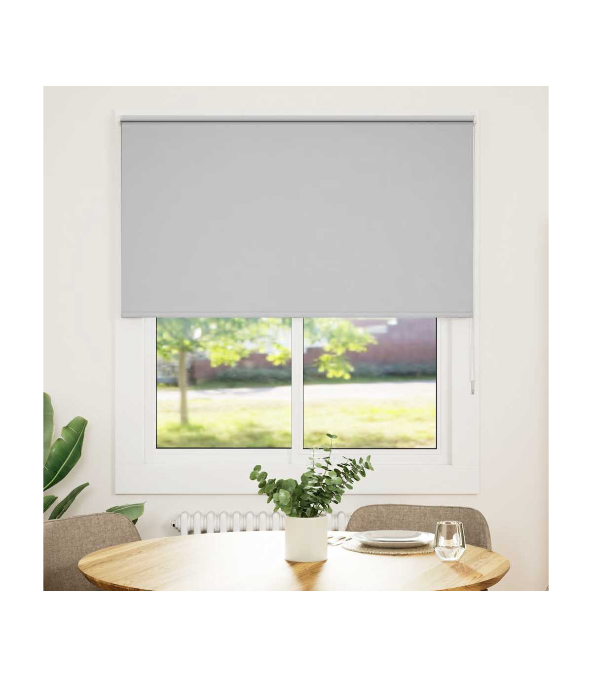 Elevate your room's style and functionality with this roller blind, providing privacy, light control, and heat regulation. Durable and low maintenance: Made from 100% polyester, the roller blind is built to last and resist wear and tear. They are also easy to clean, typically requiring light dusting or wiping with a damp cloth.Privacy and light control: Thanks to the blackout design, this roller blind provides privacy and partially blocks direct sunlight so that you can regulate the indoor temperature according to your needs.Multiple mounting methods: You can attach the roller blind to the wall or window with screws or without drilling using clamping brackets, depending on your needs. Clamping brackets for window frame rebate thickness between 1,6 and 2,5 cm.Child safety and adjustability: The roller blind includes a chain connector that makes it easy to adjust the height according to your needs, and it also has a cord clip to add child safety.Wide applications: This versatile roller blind is suitable for homes, offices, cafes, office buildings, and so on. Warning: Keep cords out of the reach of young children. Cords may become wrapped around a child’s neck. Good to know:Before buying blinds, start by measuring your window glass. Just a friendly tip: the fabric is a bit narrower than the total width, including the brackets.To make sure your new blinds provide complete coverage, just add 4,3 cm to the width of the window glass when calculating what to order.