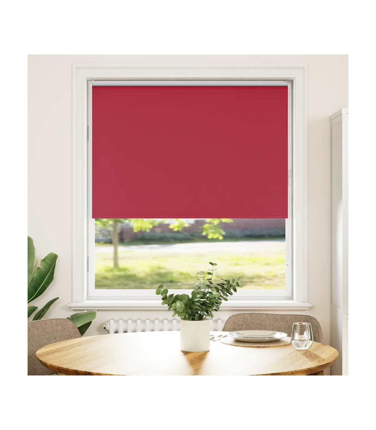 Elevate your room's style and functionality with this roller blind, providing privacy, light control, and heat regulation. Durable and low maintenance: Made from 100% polyester, the roller blind is built to last and resist wear and tear. They are also easy to clean, typically requiring light dusting or wiping with a damp cloth.Privacy and light control: Thanks to the blackout design, this roller blind provides privacy and partially blocks direct sunlight so that you can regulate the indoor temperature according to your needs.Multiple mounting methods: You can attach the roller blind to the wall or window with screws or without drilling using clamping brackets, depending on your needs. Clamping brackets for window frame rebate thickness between 1,6 and 2,5 cm.Child safety and adjustability: The roller blind includes a chain connector that makes it easy to adjust the height according to your needs, and it also has a cord clip to add child safety.Wide applications: This versatile roller blind is suitable for homes, offices, cafes, office buildings, and so on. Warning: Keep cords out of the reach of young children. Cords may become wrapped around a child’s neck. Good to know:Before buying blinds, start by measuring your window glass. Just a friendly tip: the fabric is a bit narrower than the total width, including the brackets.To make sure your new blinds provide complete coverage, just add 4,3 cm to the width of the window glass when calculating what to order.