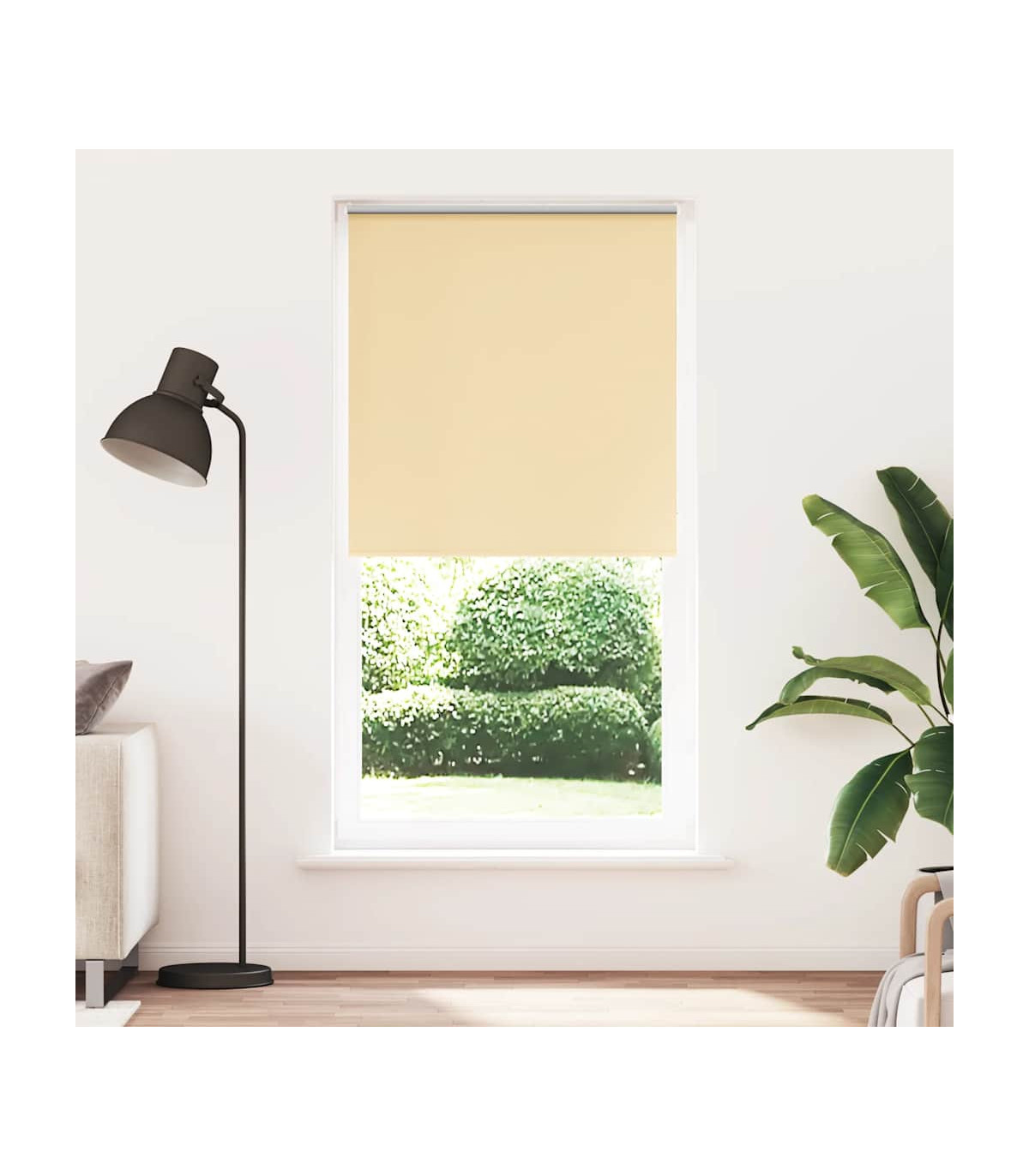 Elevate your room's style and functionality with this roller blind, providing privacy, light control, and heat regulation. Durable and low maintenance: Made from 100% polyester, the roller blind is built to last and resist wear and tear. They are also easy to clean, typically requiring light dusting or wiping with a damp cloth.Privacy and light control: Thanks to the blackout design, this roller blind provides privacy and partially blocks direct sunlight so that you can regulate the indoor temperature according to your needs.Multiple mounting methods: You can attach the roller blind to the wall or window with screws or without drilling using clamping brackets, depending on your needs. Clamping brackets for window frame rebate thickness between 1,6 and 2,5 cm.Child safety and adjustability: The roller blind includes a chain connector that makes it easy to adjust the height according to your needs, and it also has a cord clip to add child safety.Wide applications: This versatile roller blind is suitable for homes, offices, cafes, office buildings, and so on. Warning: Keep cords out of the reach of young children. Cords may become wrapped around a child’s neck. Good to know:Before buying blinds, start by measuring your window glass. Just a friendly tip: the fabric is a bit narrower than the total width, including the brackets.To make sure your new blinds provide complete coverage, just add 4,3 cm to the width of the window glass when calculating what to order.