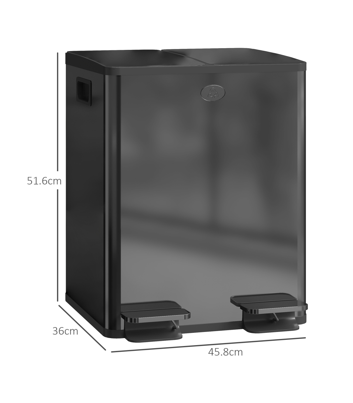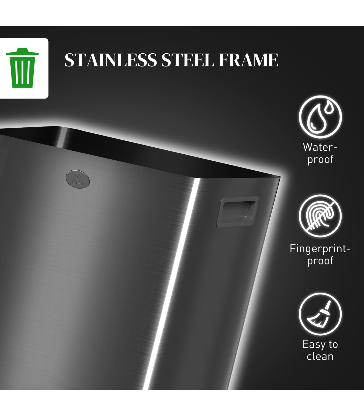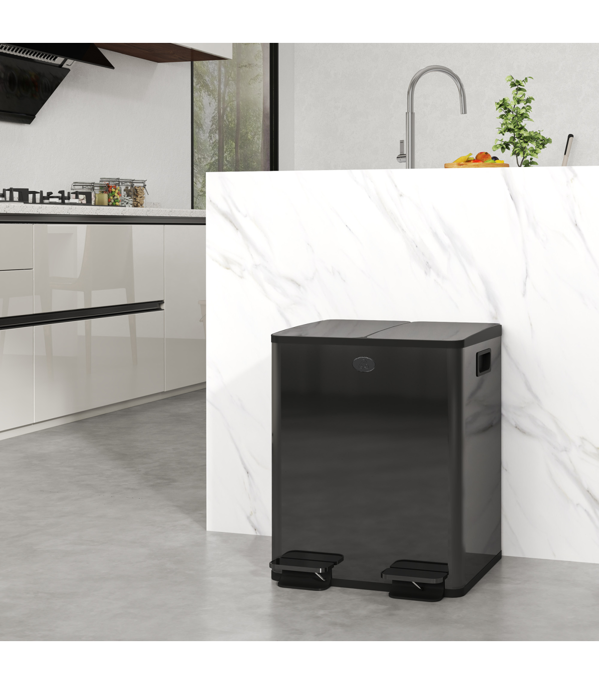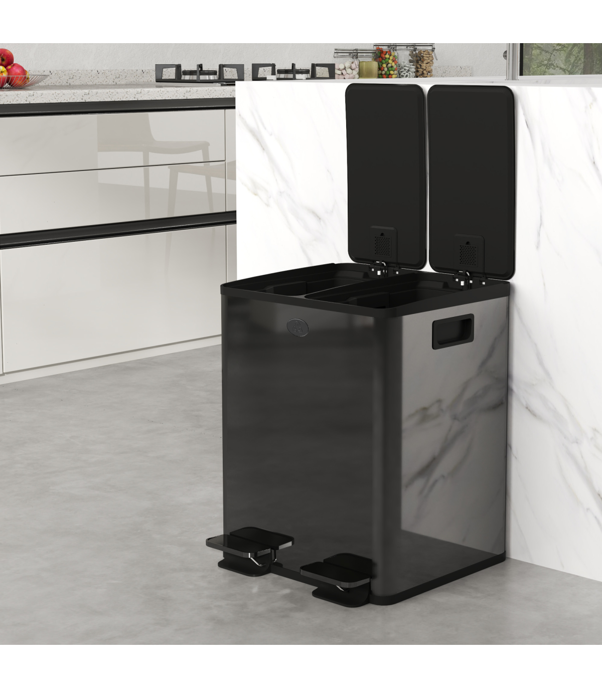 ● Stainless steel structure makes double bin robust. Sleek polished finish. Resists fingerprint marks for hygiene