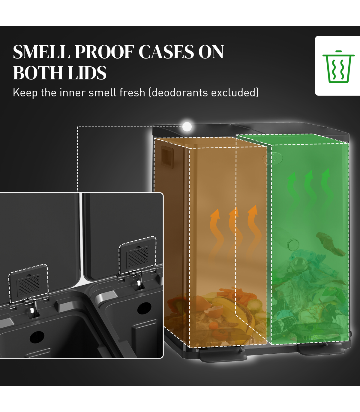 the two-compartment design allows you to separate waste as needed. Place deodorisers in the lid slots to keep the smell fresh, with a stay-open option for super easy cleaning. So, when you feel stuck on space, go for this small but mighty dual rubbish bin.