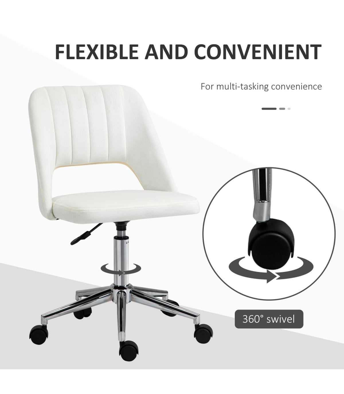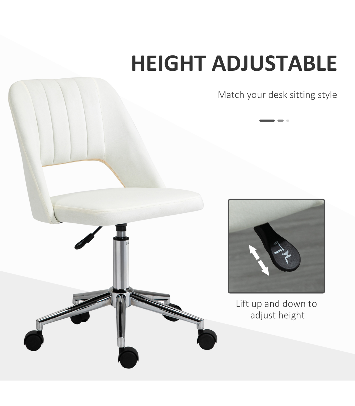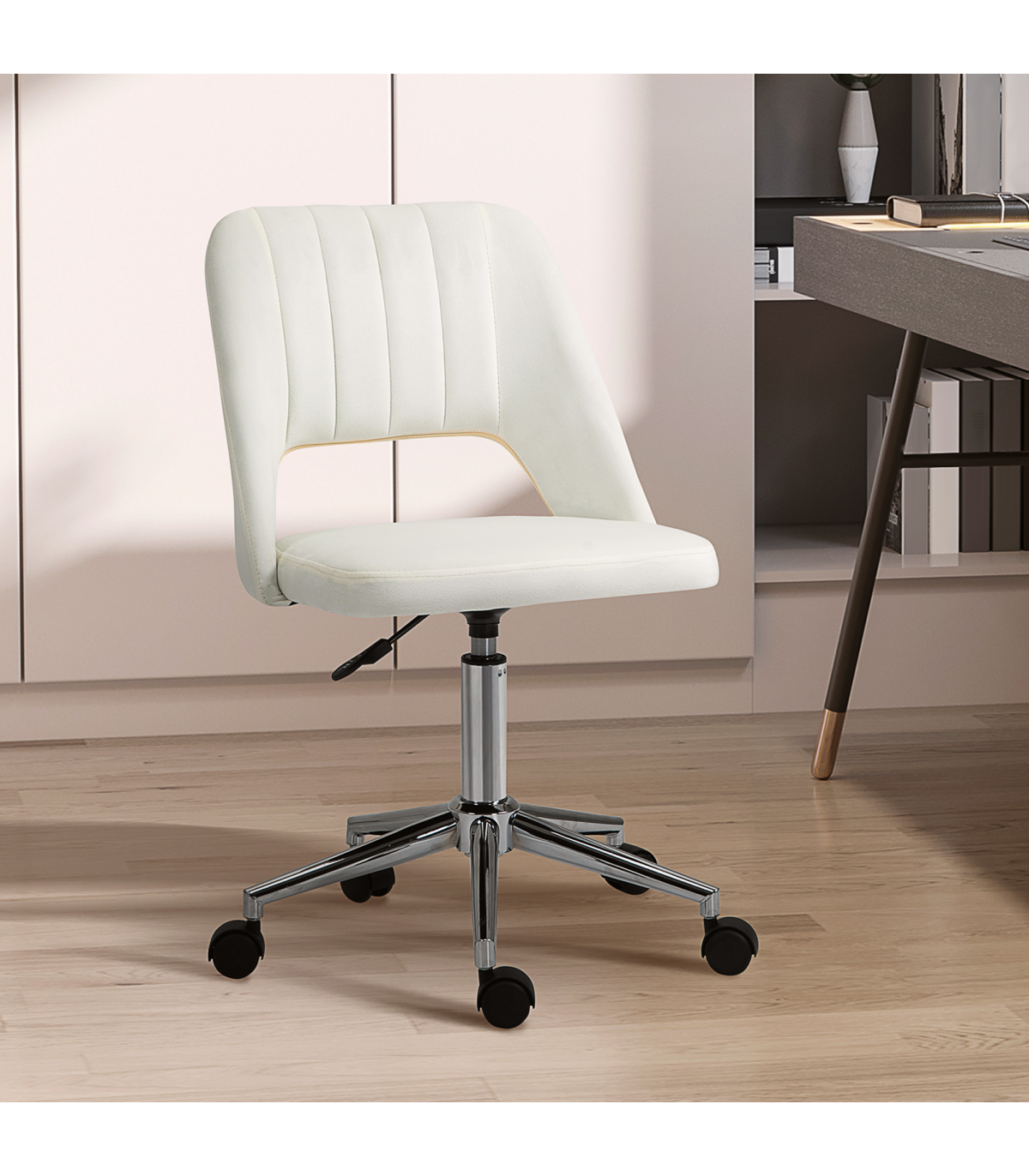 Vinsetto Mid-Back Swivel Home Office Chair Scallop Computer Chair Cream White