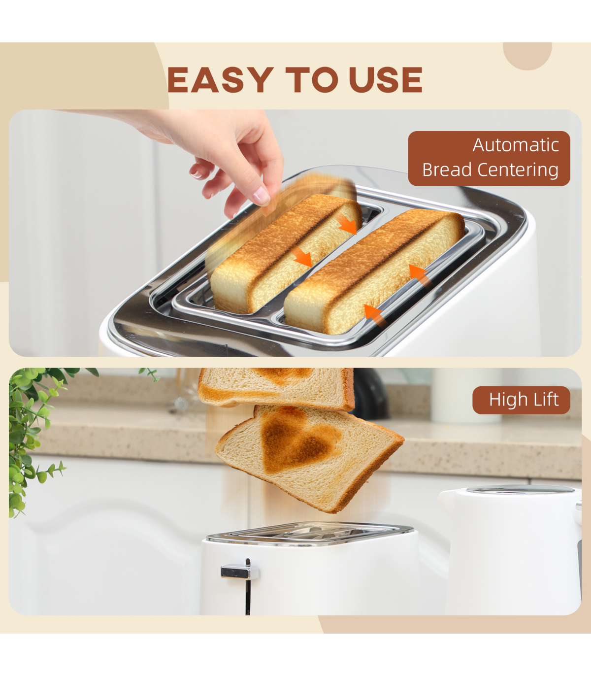 ● Toaster's high lift design aids small slice removal
