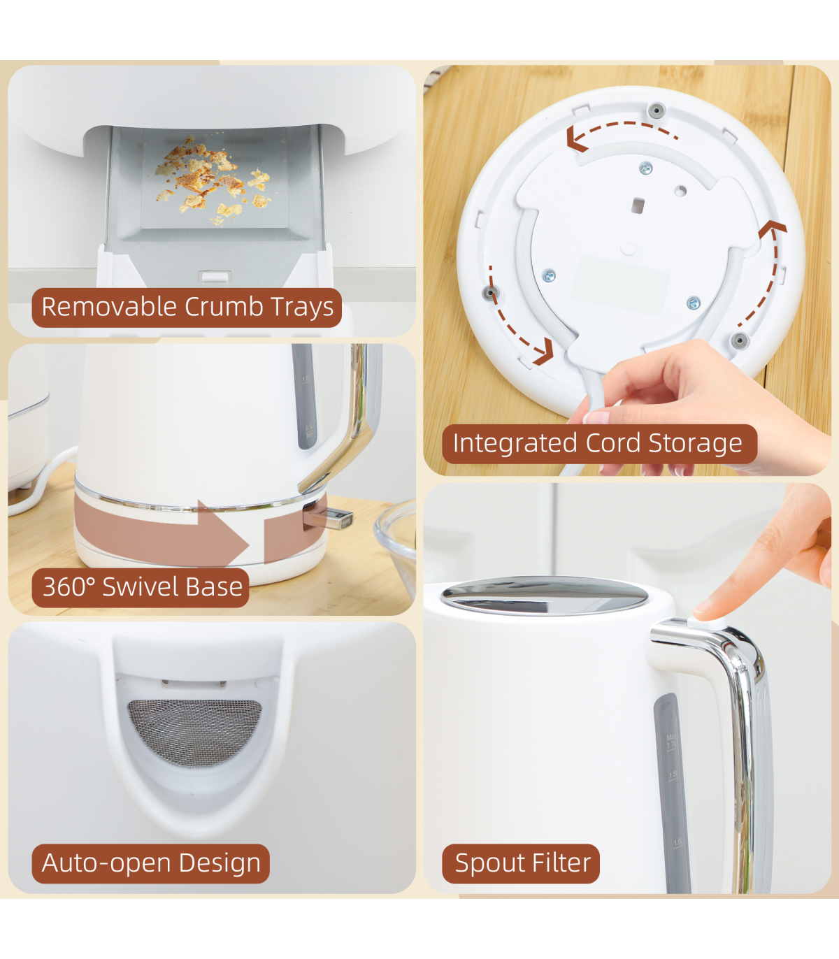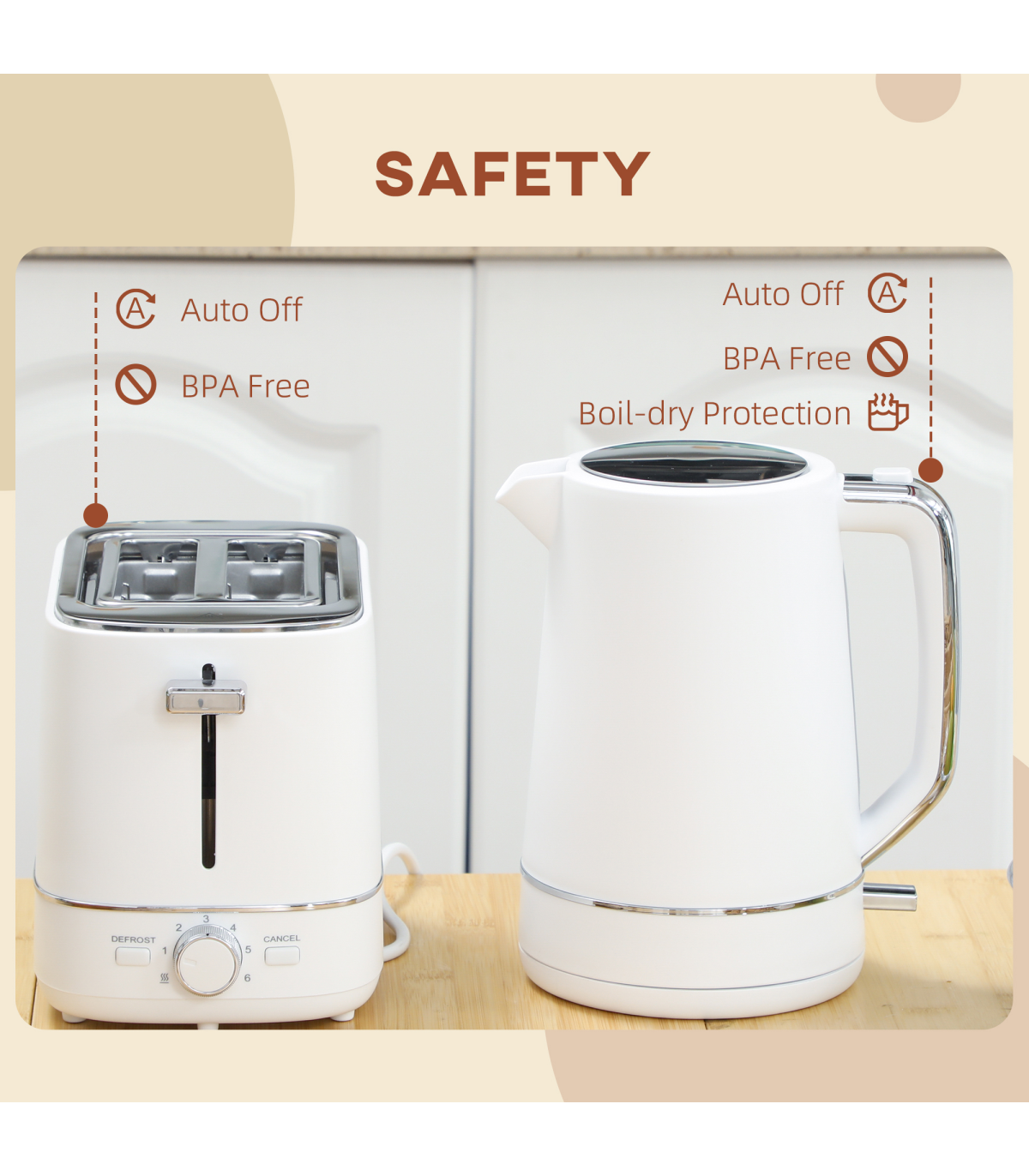 ● Kettle and toaster include automatic shut-off and made of BPA-free materials for safety. Kettle also has boil-dry protection