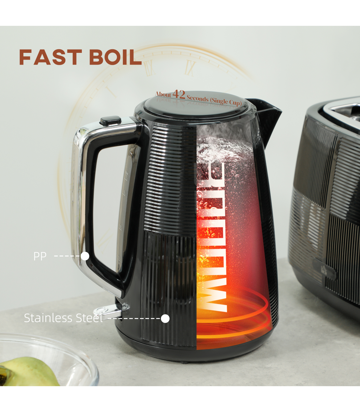 ● Power: 2520-3000W (Kettle), 920-1080W (Toaster)