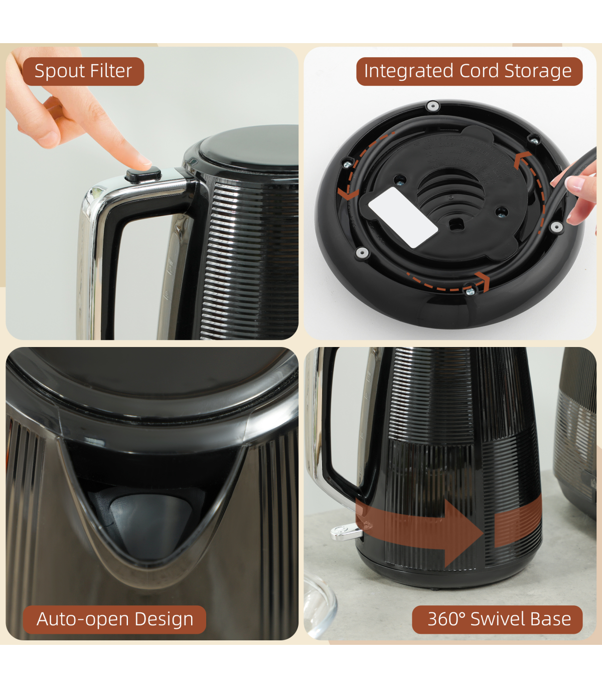 ● Integrated cord storage in kettle keeps kitchen tidy