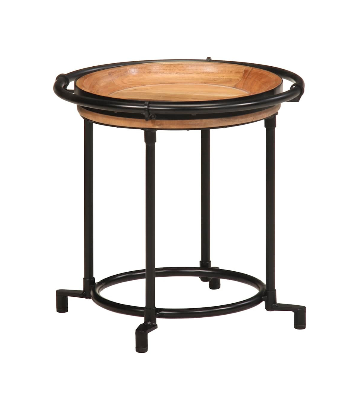 This side table set is designed to be the focal point of your room with a trendy yet practical design. Robust and stable material: Solid mango wood, a robust tropical hardwood, is highly favoured for furniture making for its exceptional durability and strength. Its beautiful wood grains make every piece of furniture slightly different from the next.Stable and long-lasting frame: The iron frame of the table enhances your interior with an industrial style and provides exceptional durability and stability.Sturdy tabletop: The sturdy tabletop of the hallway table is perfect for placing your framed photos, potted plants, and other decorative items.Easy to maintain: Thanks to its smooth surface, the side table is easy to clean with a cloth and requires less maintenance.Wide applications: This side table has a timeless design and can be used in the living room, kitchen, or bedroom according to your needs. Good to know:Each item is unique with variations in colours and grains. The delivery is random, ensuring the exclusivity and individuality of your product.