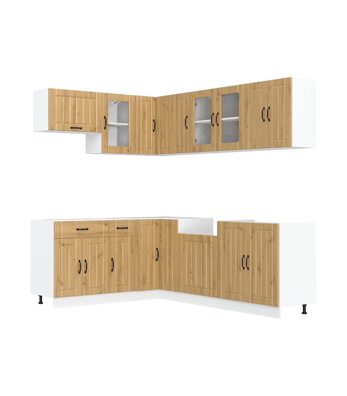 1 x Sink base cabinet: 80 x 46 x 81.5 cm (W x D x H)1 x kitchen base cabinet: 30 x 46 x 81.5 cm (W x D x H)1 x kitchen base cabinet: 60 x 46 x 81.5 cm (W x D x H)1 x Kitchen wall cabinet: 30 x 31 x 60 cm (W x D x H)1 x kitchen wall cabinet: 60 x 31 x 60 cm (W x D x H)1 x kitchen corner base cabinet: 75.5 x 75.5 x 81.5 cm (W x D x H)1 x kitchen wall cabinet: 40 x 31 x 60 cm (W x D x H)1 x Kitchen wall cabinet: 60 x 31 x 40 cm (W x D x H)1 x kitchen wall cabinet: 80 x 31 x 60 cm (W x D x H)1 x Kitchen wall corner cabinet: 57 x 57 x 60 cm (W x D x H)1 x Dishwasher panel: 60 x 1.5 x 67 cm (W x D x H)