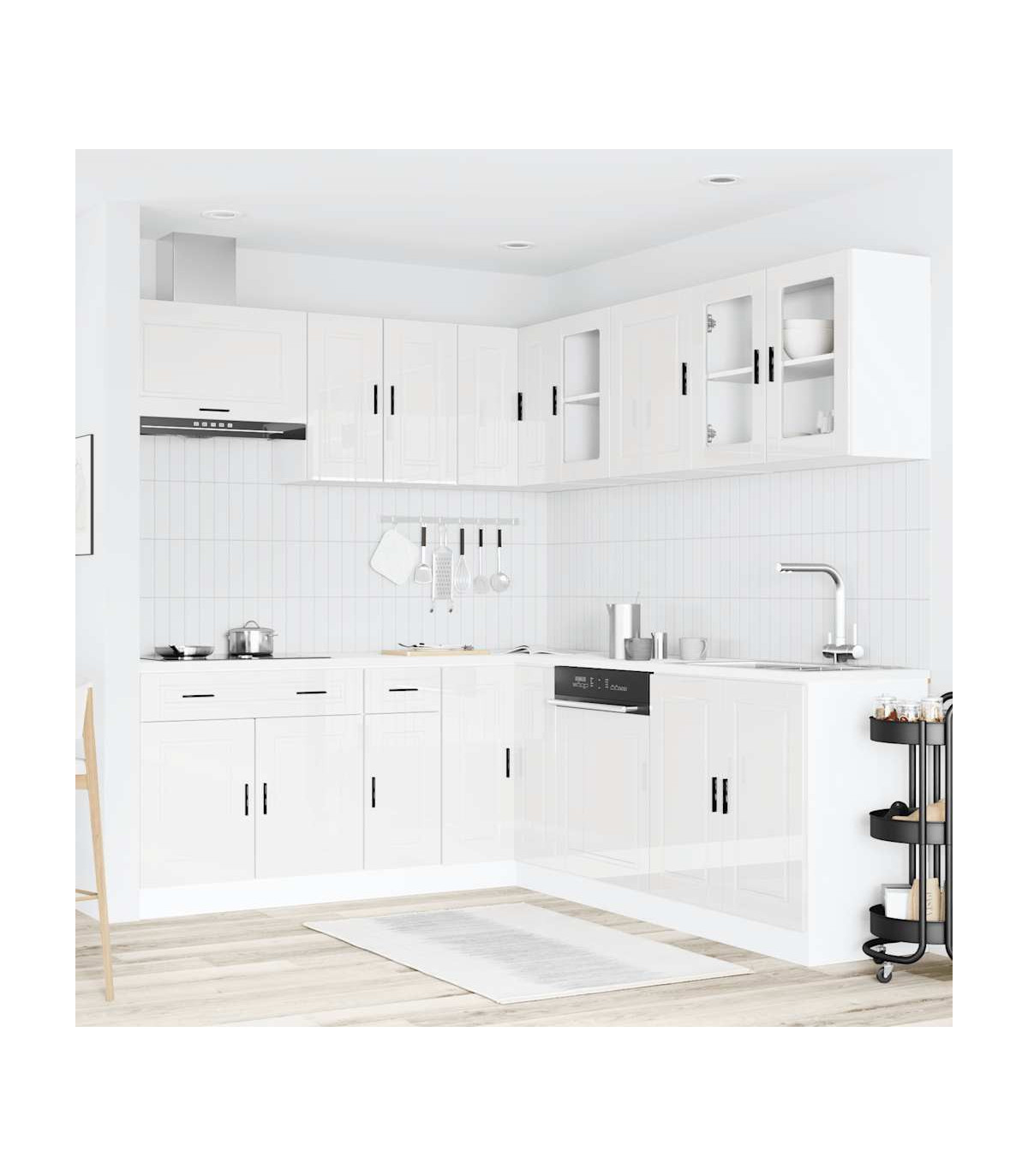 vidaXL 11 Piece Kitchen Cabinet Set Porto Gloss White Engineered Wood