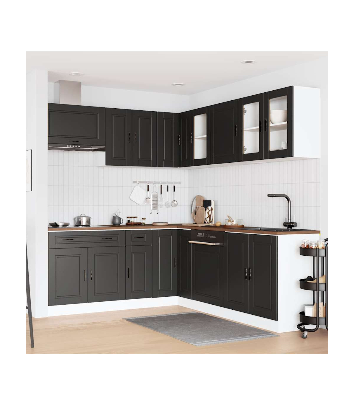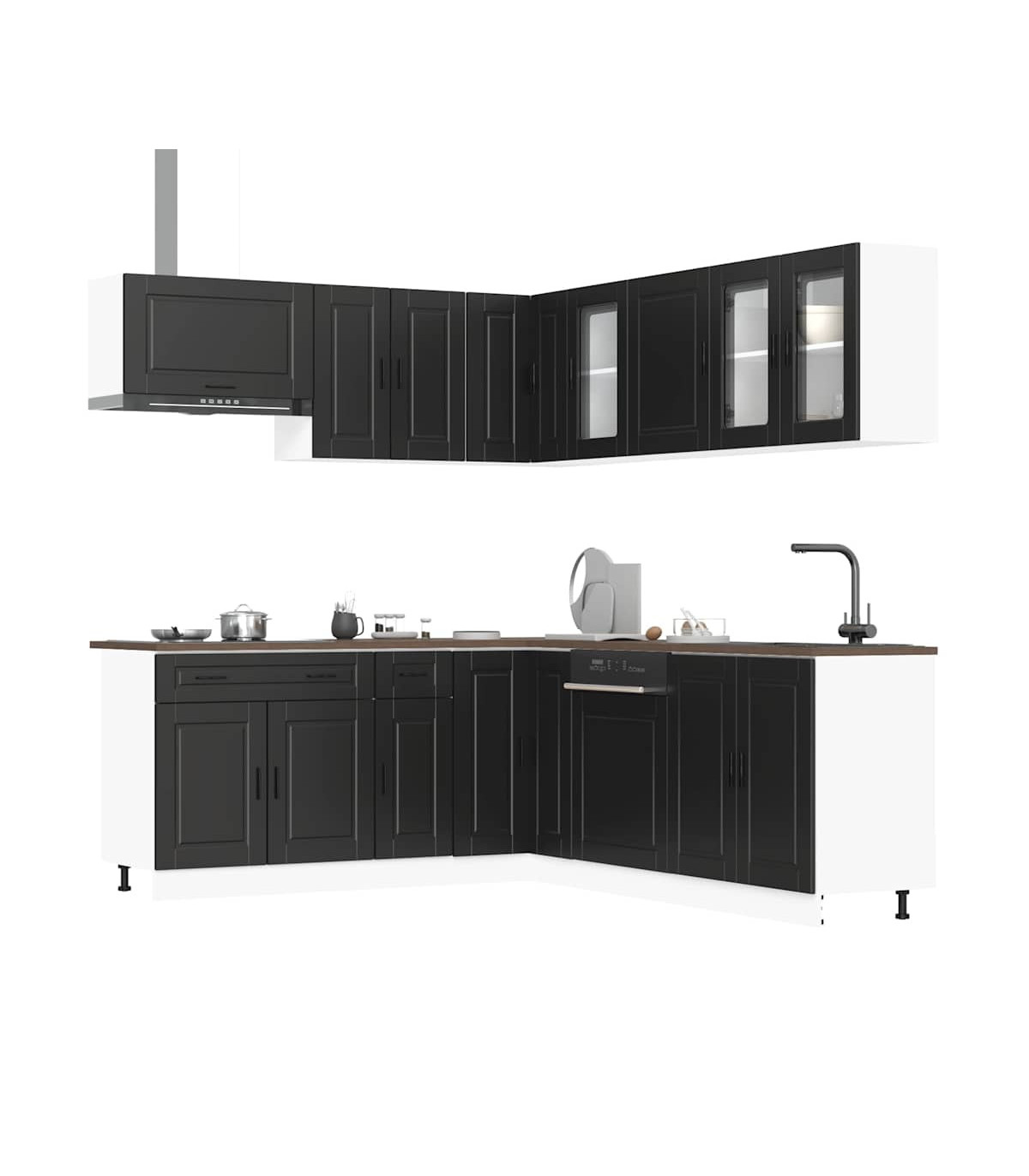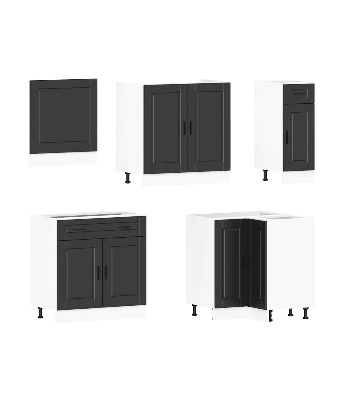 1 x Sink base cabinet: 80 x 46 x 81.5 cm (W x D x H)1 x kitchen base cabinet: 30 x 46 x 81.5 cm (W x D x H)1 x kitchen base cabinet: 80 x 46 x 81.5 cm (W x D x H)1 x Kitchen wall cabinet: 50 x 31 x 60 cm (W x D x H)1 x kitchen wall cabinet: 60 x 31 x 60 cm (W x D x H)1 x kitchen corner base cabinet: 75.5 x 75.5 x 81.5 cm (W x D x H)1 x kitchen wall cabinet: 40 x 31 x 60 cm (W x D x H)1 x Kitchen wall cabinet: 60 x 31 x 40 cm (W x D x H)1 x kitchen wall cabinet: 80 x 31 x 60 cm (W x D x H)1 x Kitchen wall corner cabinet: 57 x 57 x 60 cm (W x D x H)1 x Dishwasher panel: 60 x 1.5 x 67 cm (W x D x H)