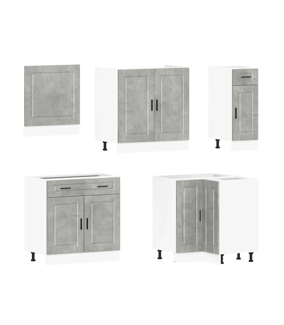 1 x Sink base cabinet: 80 x 46 x 81.5 cm (W x D x H)1 x kitchen base cabinet: 30 x 46 x 81.5 cm (W x D x H)1 x kitchen base cabinet: 80 x 46 x 81.5 cm (W x D x H)1 x Kitchen wall cabinet: 50 x 31 x 60 cm (W x D x H)1 x kitchen wall cabinet: 60 x 31 x 60 cm (W x D x H)1 x kitchen corner base cabinet: 75.5 x 75.5 x 81.5 cm (W x D x H)1 x kitchen wall cabinet: 40 x 31 x 60 cm (W x D x H)1 x Kitchen wall cabinet: 60 x 31 x 40 cm (W x D x H)1 x kitchen wall cabinet: 80 x 31 x 60 cm (W x D x H)1 x Kitchen wall corner cabinet: 57 x 57 x 60 cm (W x D x H)1 x Dishwasher panel: 60 x 1.5 x 67 cm (W x D x H)
