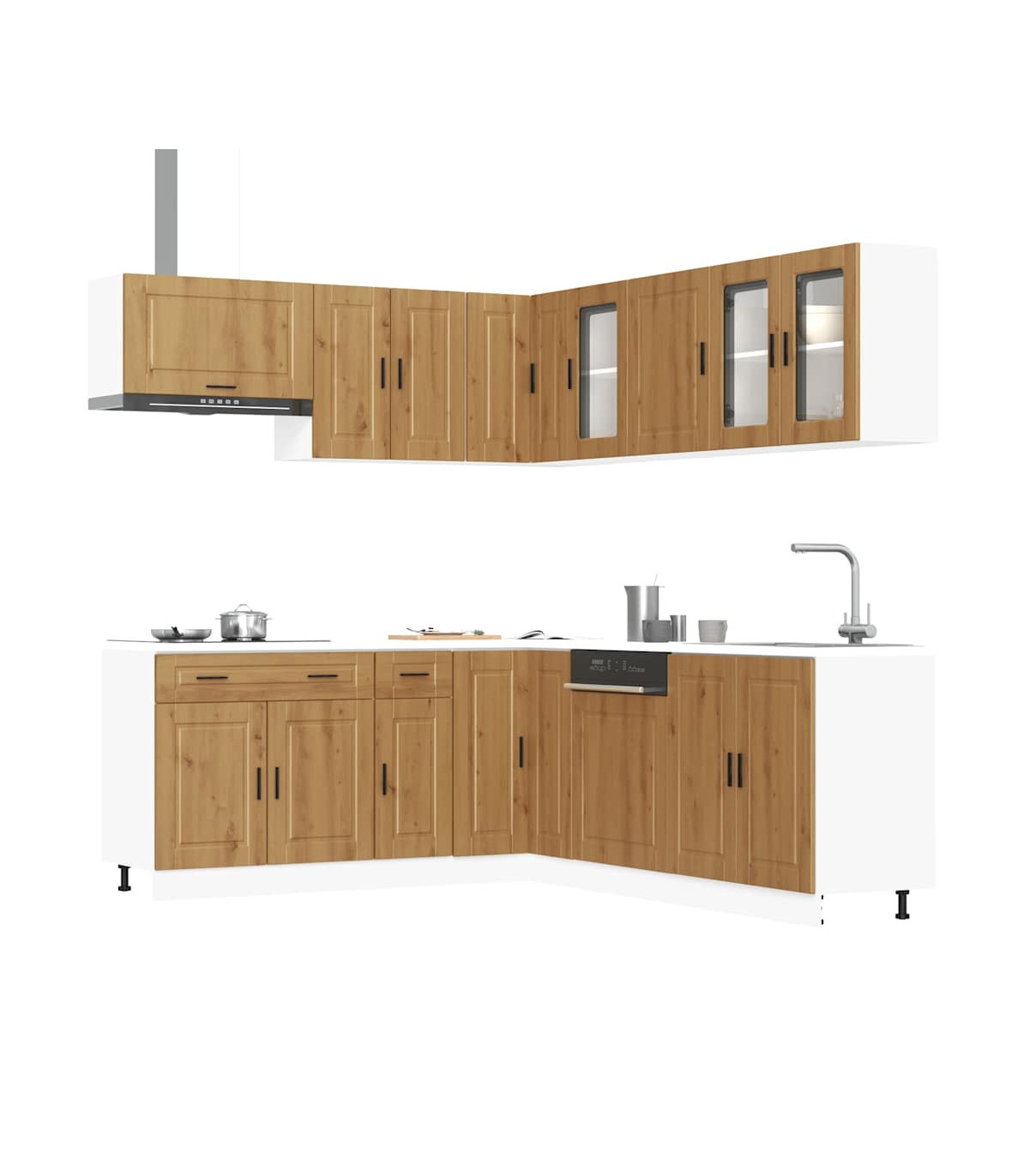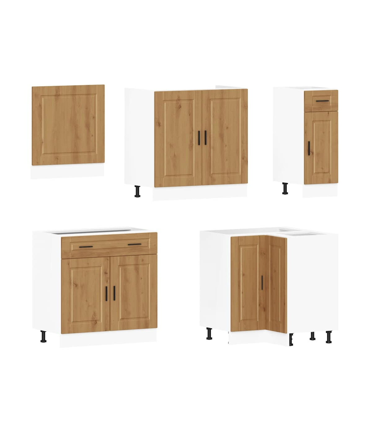 1 x Sink base cabinet: 80 x 46 x 81.5 cm (W x D x H)1 x kitchen base cabinet: 30 x 46 x 81.5 cm (W x D x H)1 x kitchen base cabinet: 80 x 46 x 81.5 cm (W x D x H)1 x Kitchen wall cabinet: 50 x 31 x 60 cm (W x D x H)1 x kitchen wall cabinet: 60 x 31 x 60 cm (W x D x H)1 x kitchen corner base cabinet: 75.5 x 75.5 x 81.5 cm (W x D x H)1 x kitchen wall cabinet: 40 x 31 x 60 cm (W x D x H)1 x Kitchen wall cabinet: 60 x 31 x 40 cm (W x D x H)1 x kitchen wall cabinet: 80 x 31 x 60 cm (W x D x H)1 x Kitchen wall corner cabinet: 57 x 57 x 60 cm (W x D x H)1 x Dishwasher panel: 60 x 1.5 x 67 cm (W x D x H)