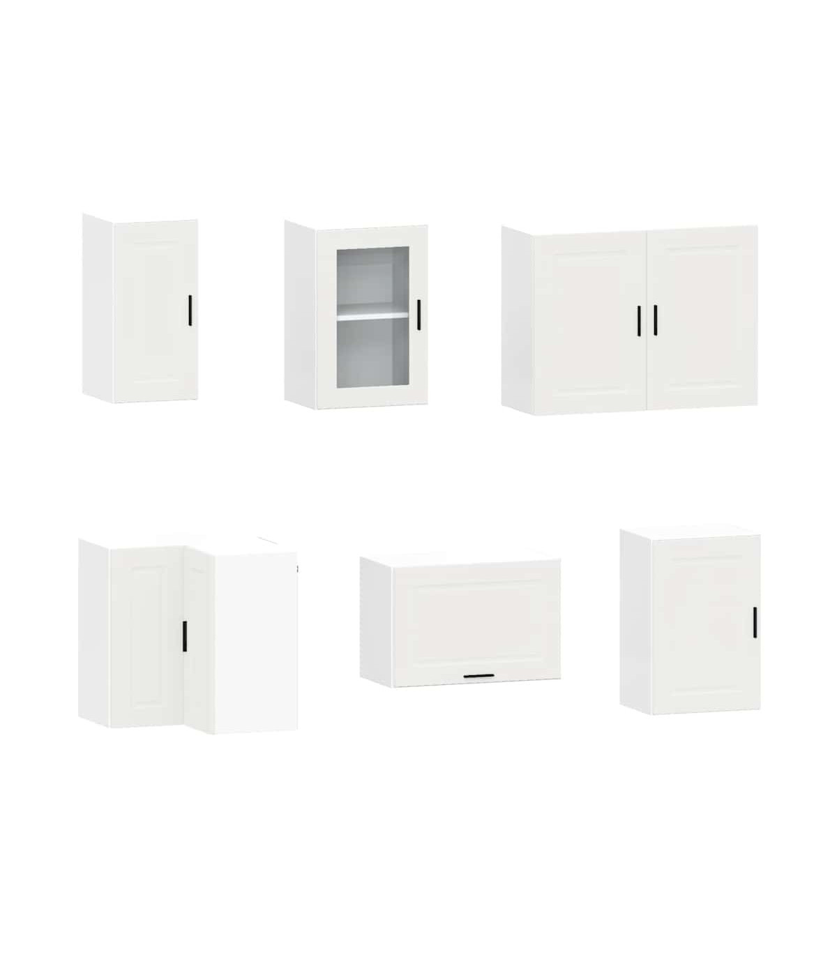 1 x Sink base cabinet: 80 x 46 x 81.5 cm (W x D x H)1 x kitchen base cabinet: 30 x 46 x 81.5 cm (W x D x H)1 x kitchen base cabinet: 40 x 46 x 81.5 cm (W x D x H)1 x Kitchen wall cabinet: 30 x 31 x 60 cm (W x D x H)1 x kitchen wall cabinet: 40 x 31 x 60 cm (W x D x H)1 x kitchen wall cabinet: 80 x 31 x 60 cm (W x D x H)1 x kitchen corner base cabinet: 75.5 x 75.5 x 81.5 cm (W x D x H)1 x kitchen wall cabinet: 40 x 31 x 60 cm (W x D x H)1 x Kitchen wall cabinet: 60 x 31 x 40 cm (W x D x H)1 x Kitchen wall corner cabinet: 57 x 57 x 60 cm (W x D x H)1 x Dishwasher panel: 60 x 1.5 x 67 cm (W x D x H)