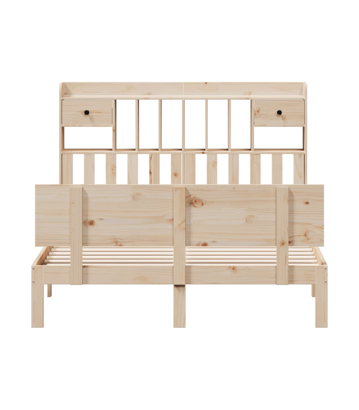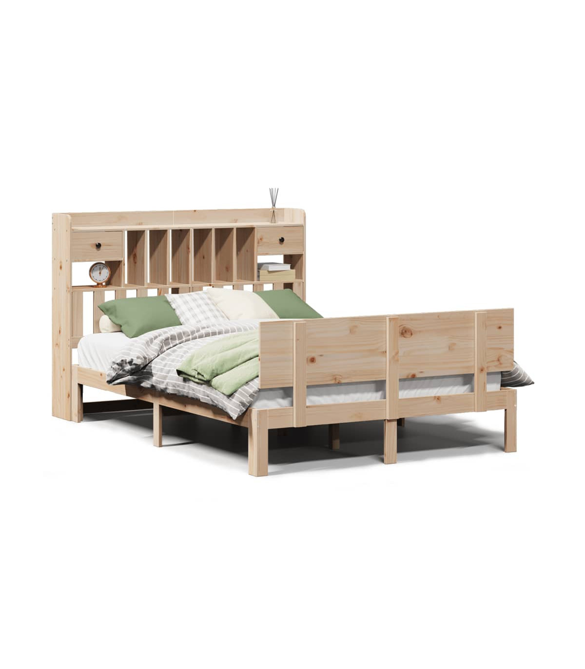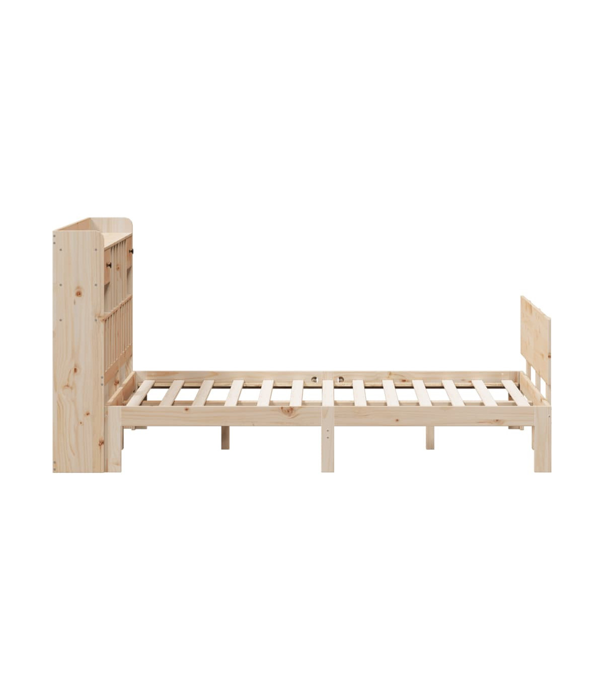 Get a better restful night's sleep from this bookcase bed! It makes a welcoming addition to any bedroom. Stable and long-lasting frame: Solid pinewood is known for its strength and durability. Its straight grains and distinctive knots contribute to its rustic charm. Slatted base for optimal support: The bed frame is equipped with a slatted base for support and breathability for your mattress. Ample storage space: This bookcase headboard offers ample storage space to keep books, decorative items, or personal belongings within easy reach, reducing clutter in the bedroom. Practical footboard: The footboard not only contributes to the overall stability of the bed frame, providing a safe sleeping environment, it also secures your mattress in place and prevents blankets, sheets and other bedding from falling off the end of the bed, maintaining a neat appearance. Space saving: This headboard is a space-saving option that can replace the need for a bedside table, helping maximise your bedroom space, and making it ideal for small or limited spaces. Good to know:A mattress is not included with this bed. We do offer a various selection of mattresses. You can check our shop for a matching mattress.