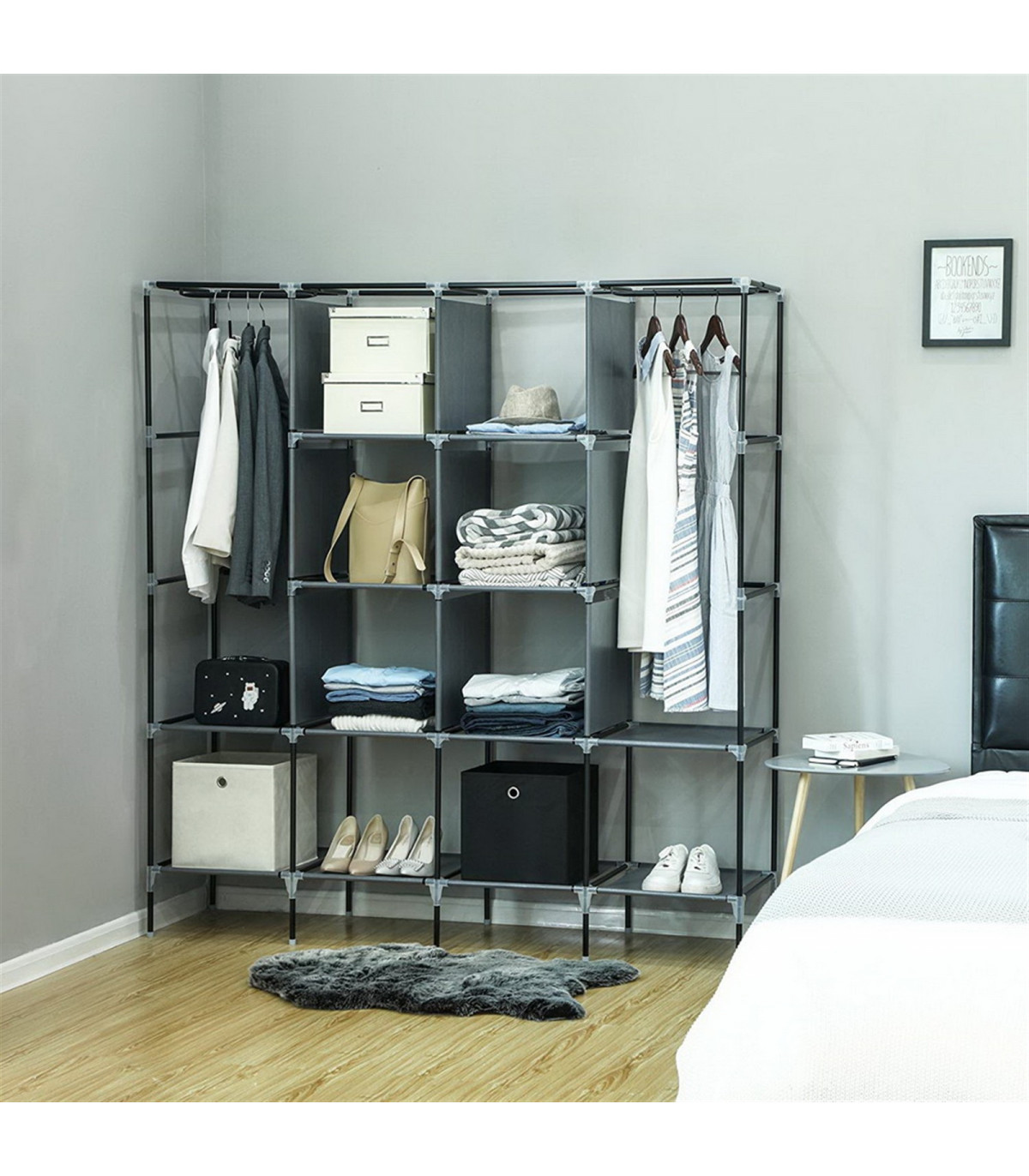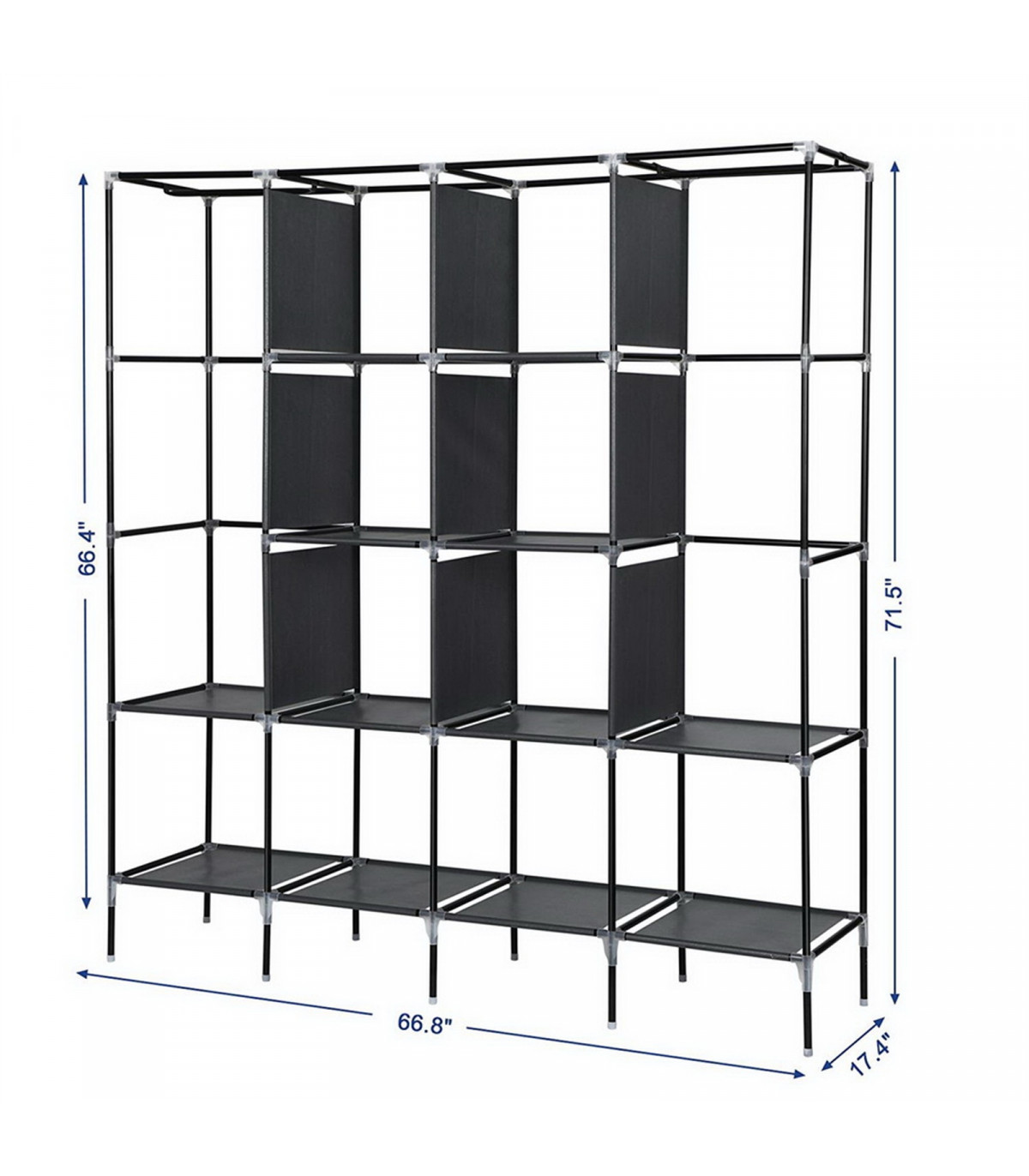 Our 67" Portable Closet Storage Organizer Clothes Wardrobe is Made from Selected Non-Woven Fabric Cover, High Quality Steel Tube and PP Plastic Connectors, Which Will Durable and Meet Your Long Term Storage Needs. The Size for The Clothes Wardrobe Makes it Suitable for Organizing Your Small Rooms and Walk-In Closet. Movable Improved Clothes Hanging Rod and 12 Storage Shelves Offers You Enough Space Both for Your Longer Outfits and Folded Clothes. Zippered Dustproof Cover Offered to Keep Your Item Away from Dust and Water-Proof Fabric Tiers are Easy to Clean. It Will Be Great Convenient and Functional. Do Not Hesitate to Buy One!