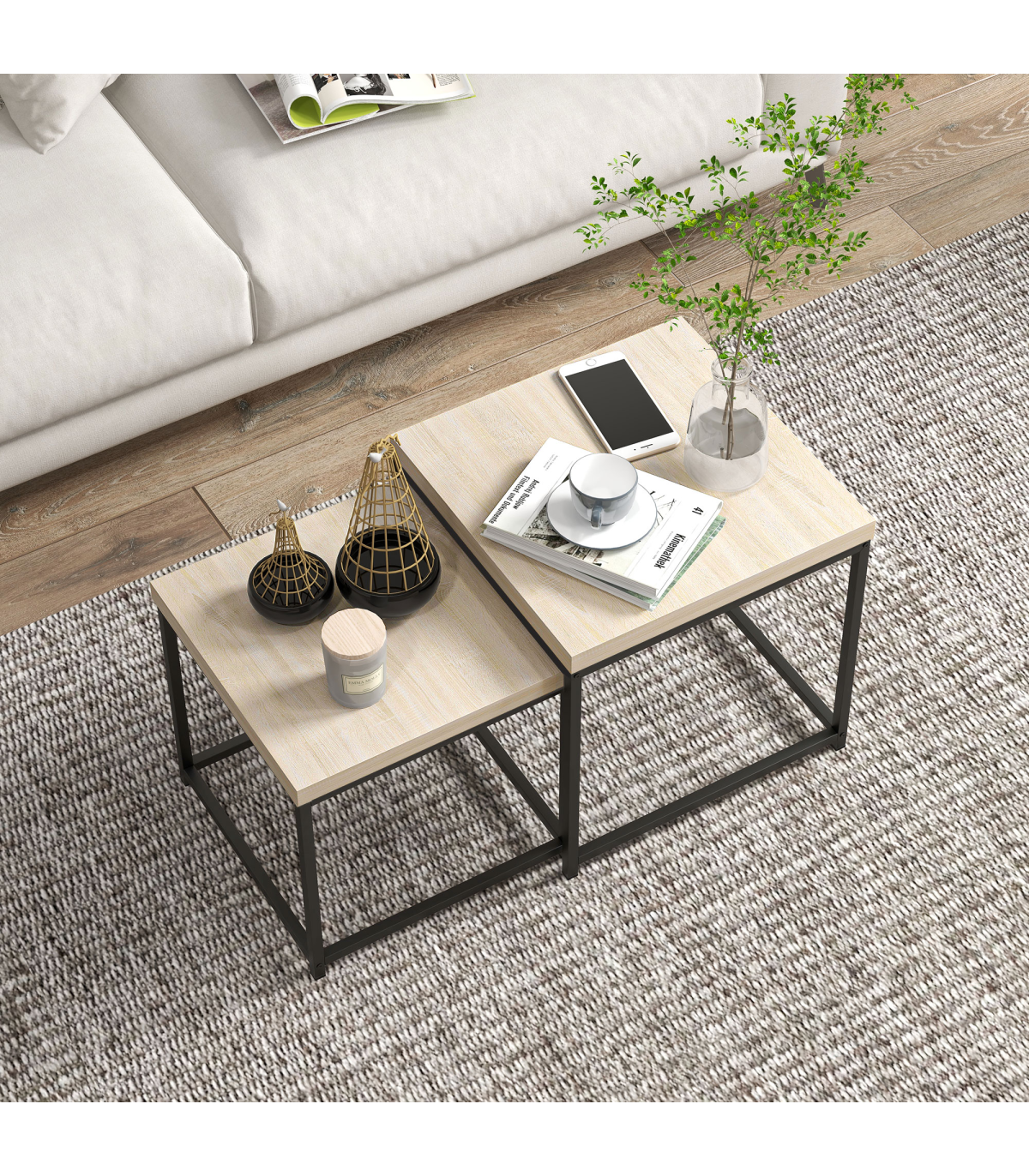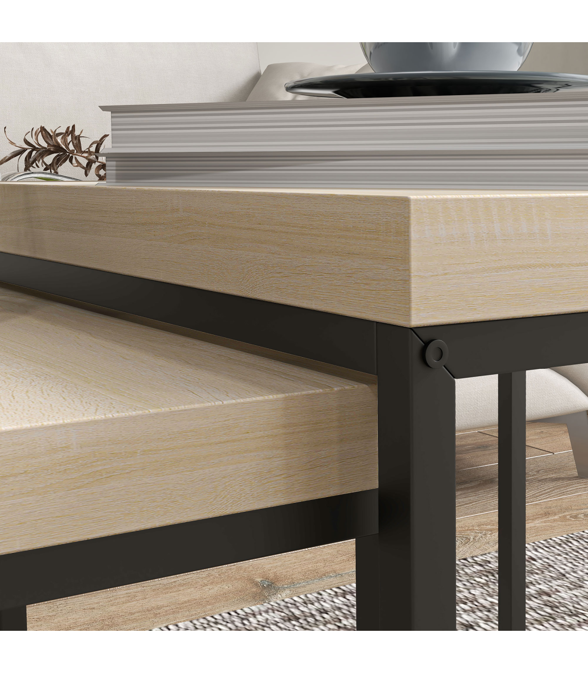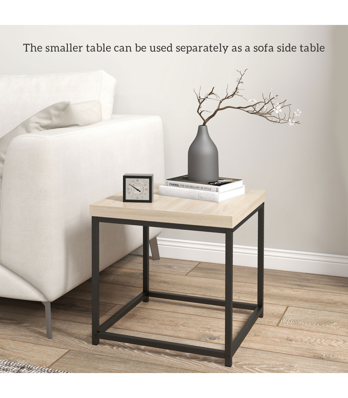 ● Stack together for saving space or use it independently, smaller table fits underneath the larger table