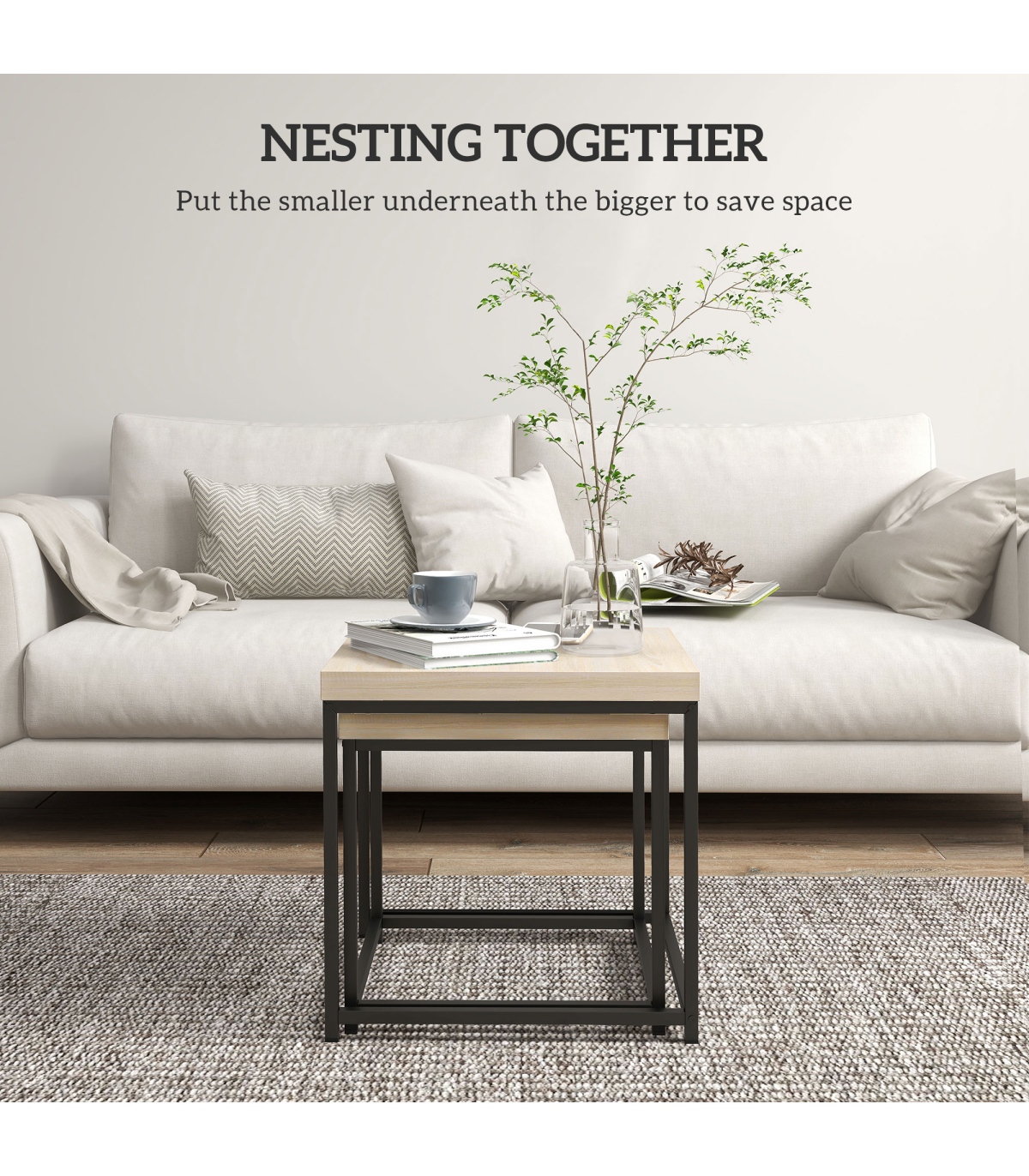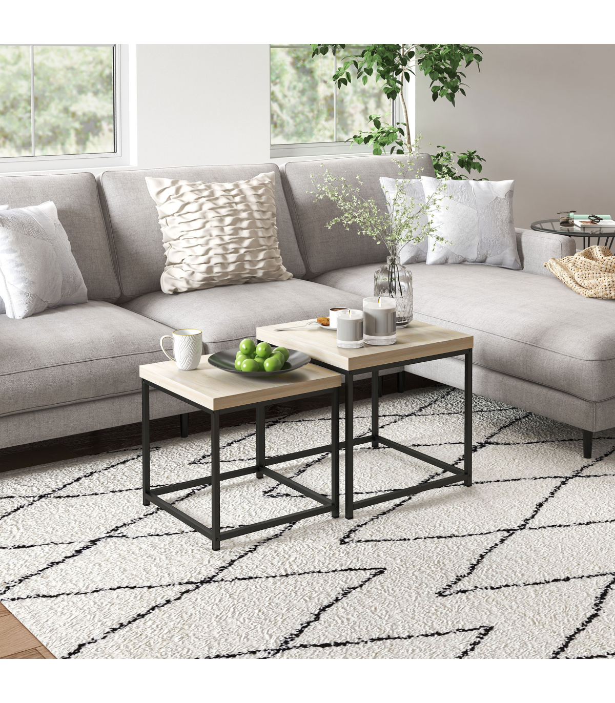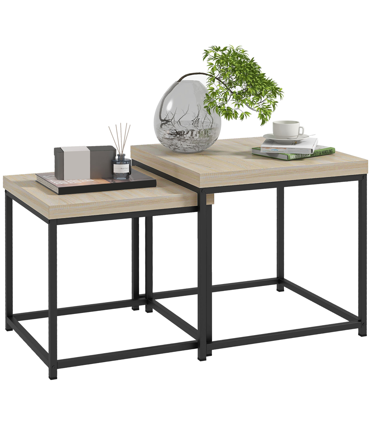 ● Stack together for saving space or use it independently, smaller table fits underneath the larger table