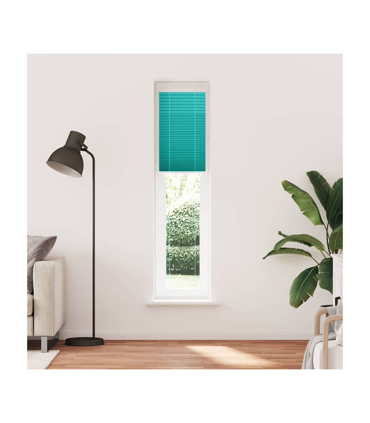 Elevate your room's style and functionality with this pleated blind, offering privacy and elegance. Durable and low maintenance: Made from 100% polyester, the pleated blind is built to last and resist wear and tear. They are also easy to clean, typically requiring light dusting or wiping with a damp cloth.Privacy and sun protection: The blind is not transparent but also not fully darkening, providing optimal privacy and glare protection with its pleated fabric. You can adjust the level of privacy by moving it up or down.Two assembly ways: You can attach the pleated blind to the wall or window with screws or without drilling using clamping brackets, depending on your needs.Elegant design: Thanks to its sleek and modern pattern design, this pleated blind effortlessly complements a variety of room decor. You can use it in the living room, bedroom, office, and so on. Warning:Keep cords out of the reach of young children. Cords may become wrapped around a child’s neck. Good to know:Before buying blinds, start by measuring your window glass. Just a friendly tip: the fabric is a bit narrower than the total width, including the brackets.To make sure your new blinds provide complete coverage, just add 0,6 cm to the width of the window glass when calculating what to order.