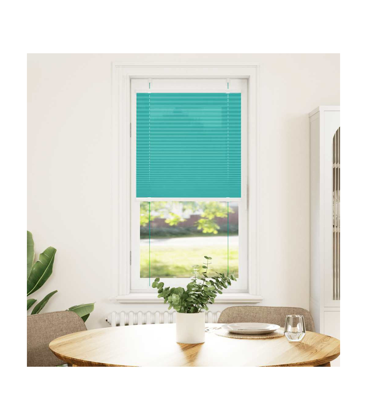Elevate your room's style and functionality with this pleated blind, offering privacy and elegance. Durable and low maintenance: Made from 100% polyester, the pleated blind is built to last and resist wear and tear. They are also easy to clean, typically requiring light dusting or wiping with a damp cloth.Privacy and sun protection: The blind is not transparent but also not fully darkening, providing optimal privacy and glare protection with its pleated fabric. You can adjust the level of privacy by moving it up or down.Two assembly ways: You can attach the pleated blind to the wall or window with screws or without drilling using clamping brackets, depending on your needs.Elegant design: Thanks to its sleek and modern pattern design, this pleated blind effortlessly complements a variety of room decor. You can use it in the living room, bedroom, office, and so on. Warning:Keep cords out of the reach of young children. Cords may become wrapped around a child’s neck. Good to know:Before buying blinds, start by measuring your window glass. Just a friendly tip: the fabric is a bit narrower than the total width, including the brackets.To make sure your new blinds provide complete coverage, just add 0,6 cm to the width of the window glass when calculating what to order.