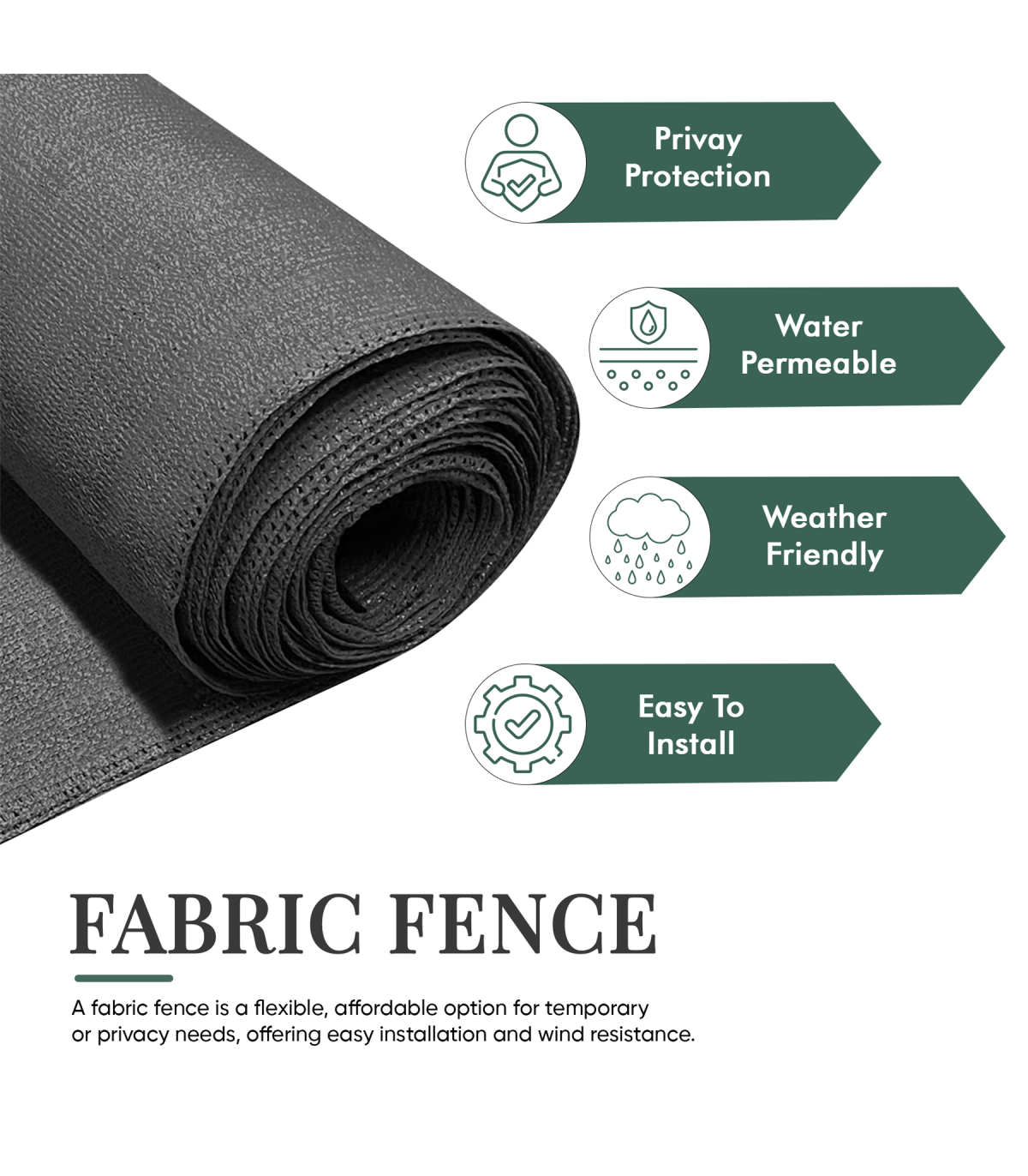 ✅ High-Quality Material: Made from durable, UV-resistant HDPE fabric, designed to withstand all weather conditions. ✅ Enhanced Privacy: Blocks up to 90% visibility – ideal for gardens, patios, balconies, and fencing perimeters. ✅ Wind & Dust Protection: Acts as an effective windbreak while reducing dust and debris around your space. ✅ Easy Installation: Comes with reinforced edges and rust-proof grommets for quick setup using zip ties or ropes. ✅ Versatile Use: Suitable for residential, commercial, and construction site applications. ✅ Customizable Sizes: Available in multiple dimensions to perfectly fit your fencing needs.
