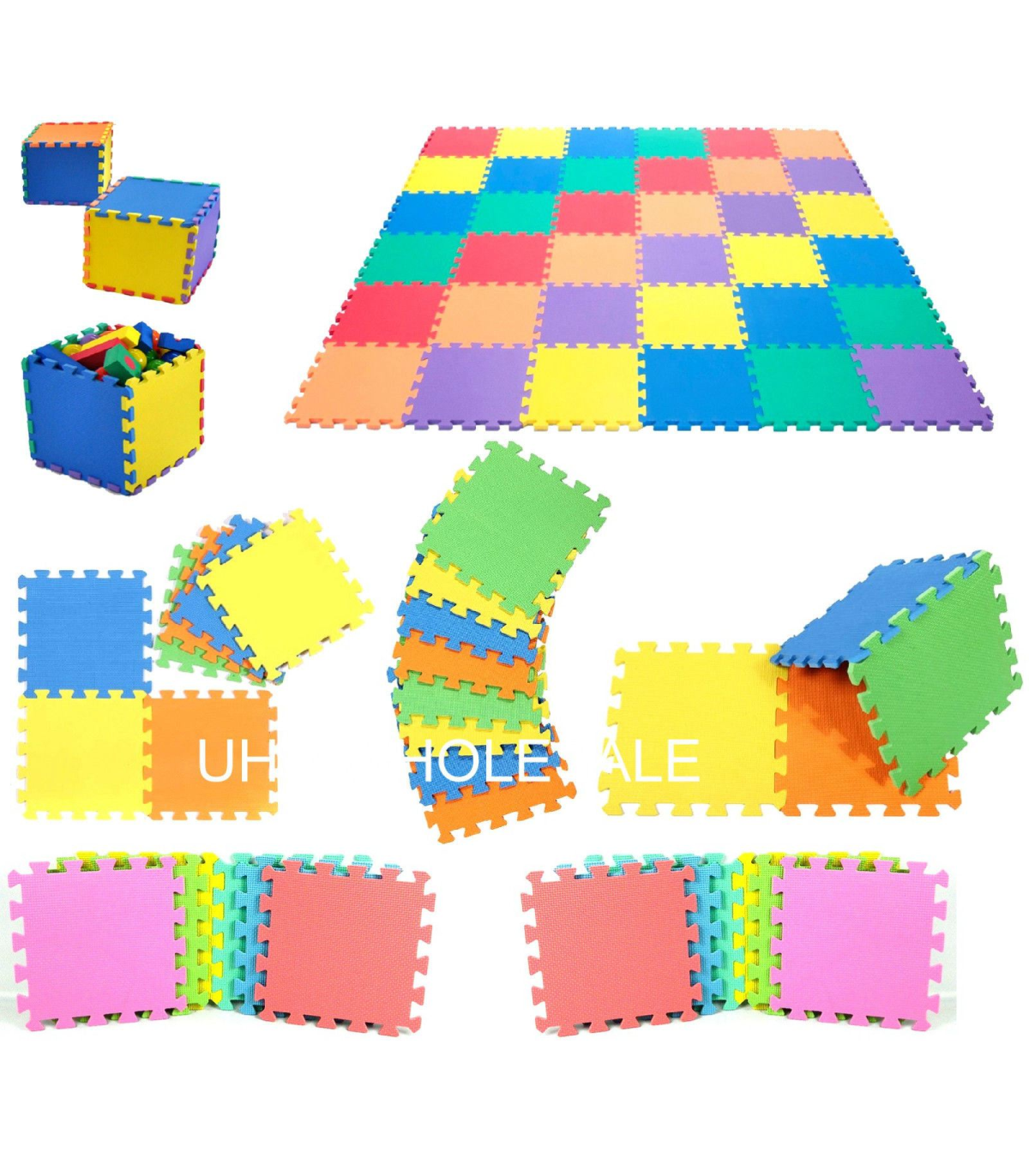 2 PACK MULTICOLOR EVA INTERLOCKING Mat 30 x 30 SI-605 These EVA Rubber Foam Floor Mats have a very wide range of uses, for both business and home. Around the home, Kids Bedrooms are the first place that comes to mind, both for the safety factor and for ease of cleaning. Utility Rooms, Games Rooms, Home Gyms would definitely benefit from the presence of these mats, and the mats are perfect to go under trampolines, inflatable swimming pools, swing sets, slides, climbing frames and more...great for softening any falls and accidents.