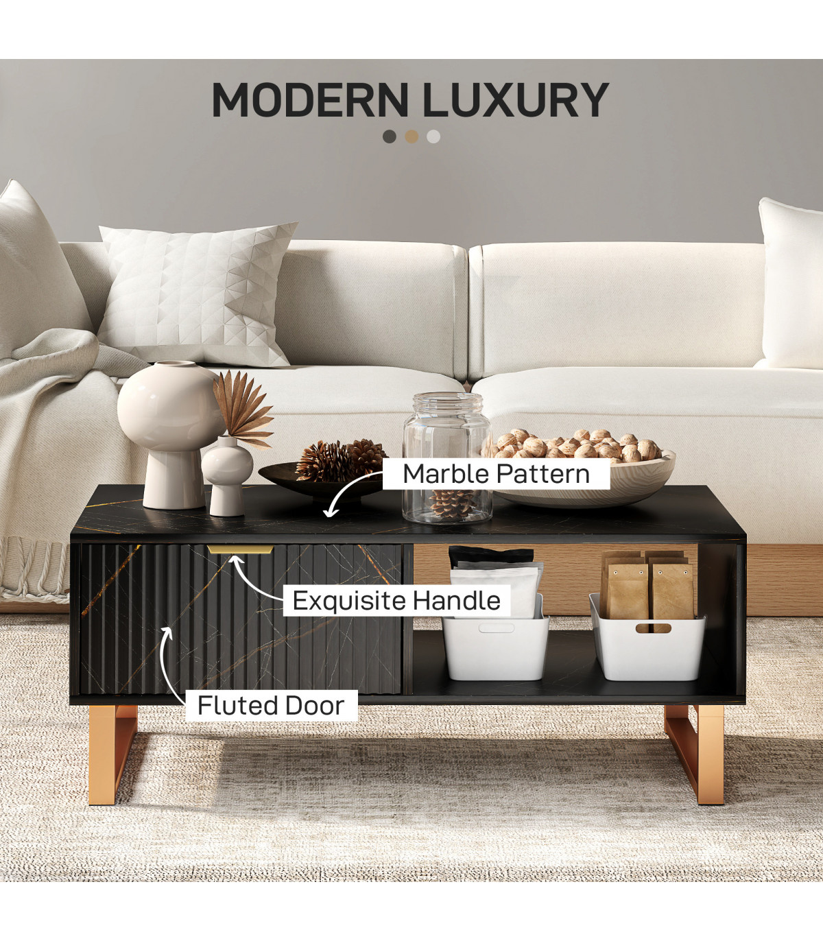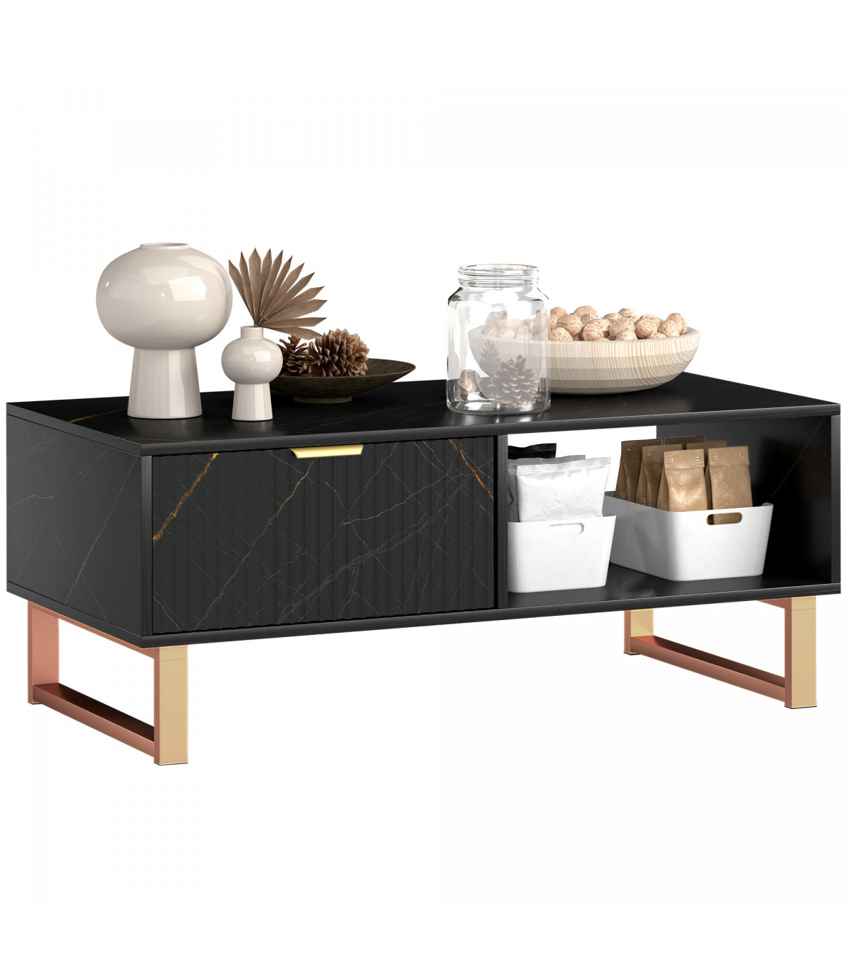 ● Flat top, a drawer and two shelves for plenty of storage and holding room