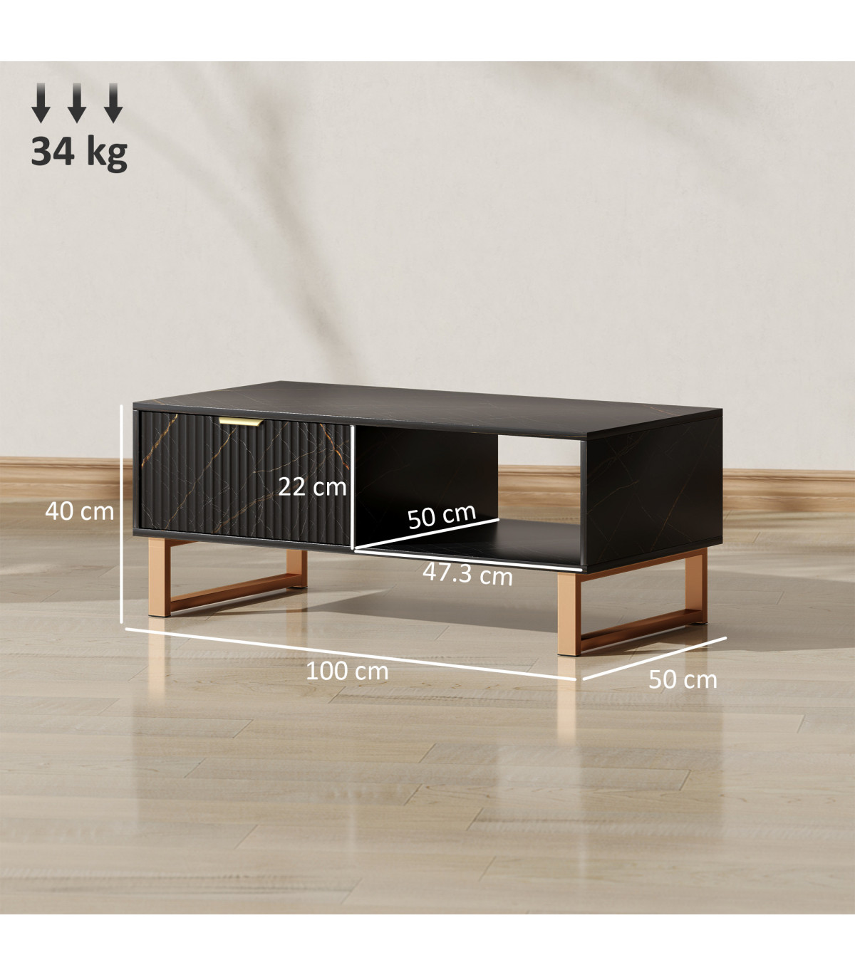 ● Weight Capacity: 34 kg (total), 15 kg (tabletop), 10 kg (right side shelf), 5 kg (back shelf), 4 kg (drawer)
