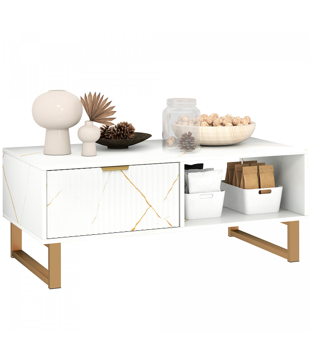 ● Flat top, a drawer and two shelves for plenty of storage and holding room