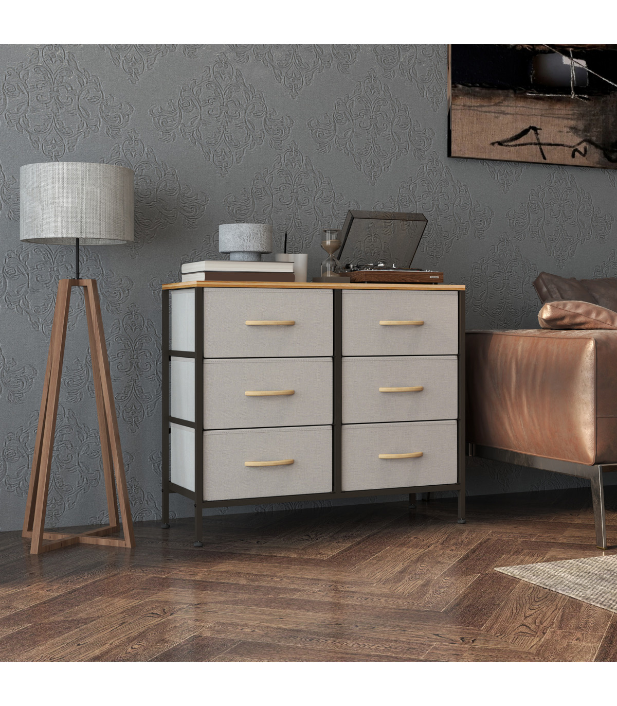 ● Six fabric drawers for plenty of holding and organising room