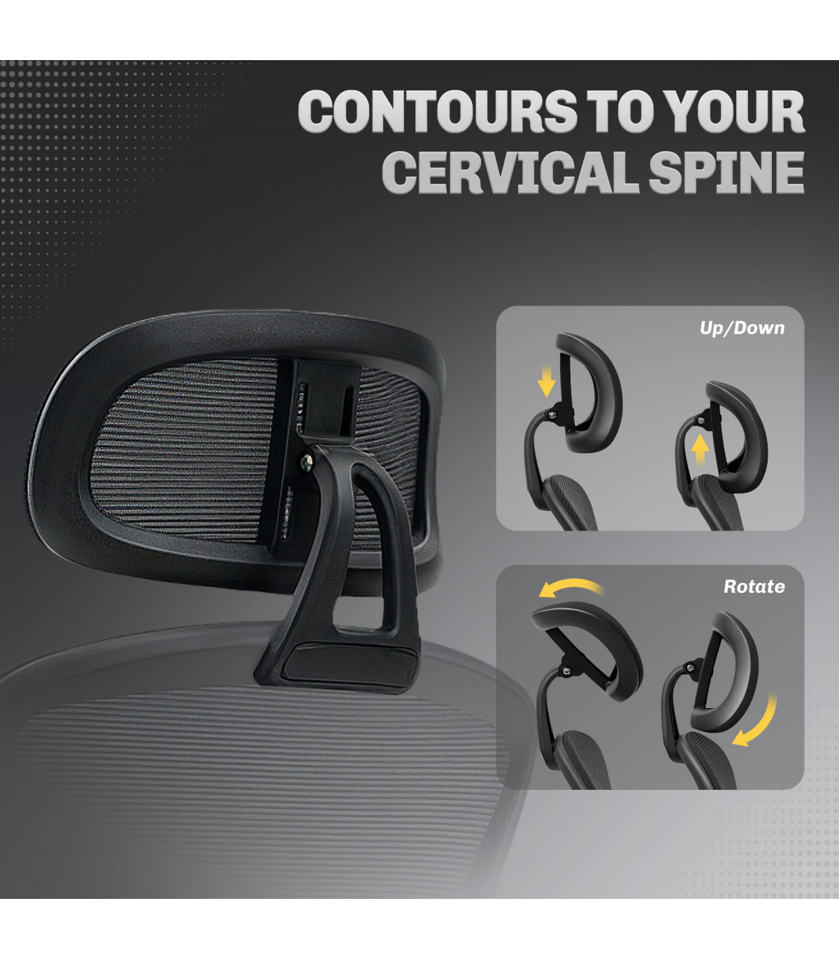 ● Headrest adjusts rotatable, up/down and detaches for personalised neck support