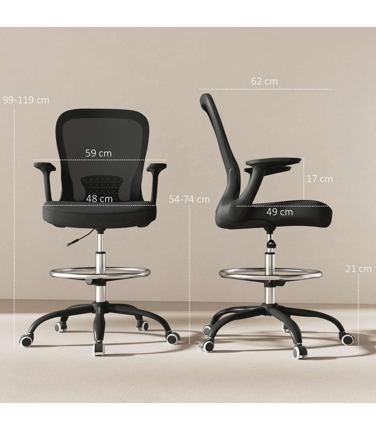 ● Overall Dimension: 59W x 62D x 99-119H cm