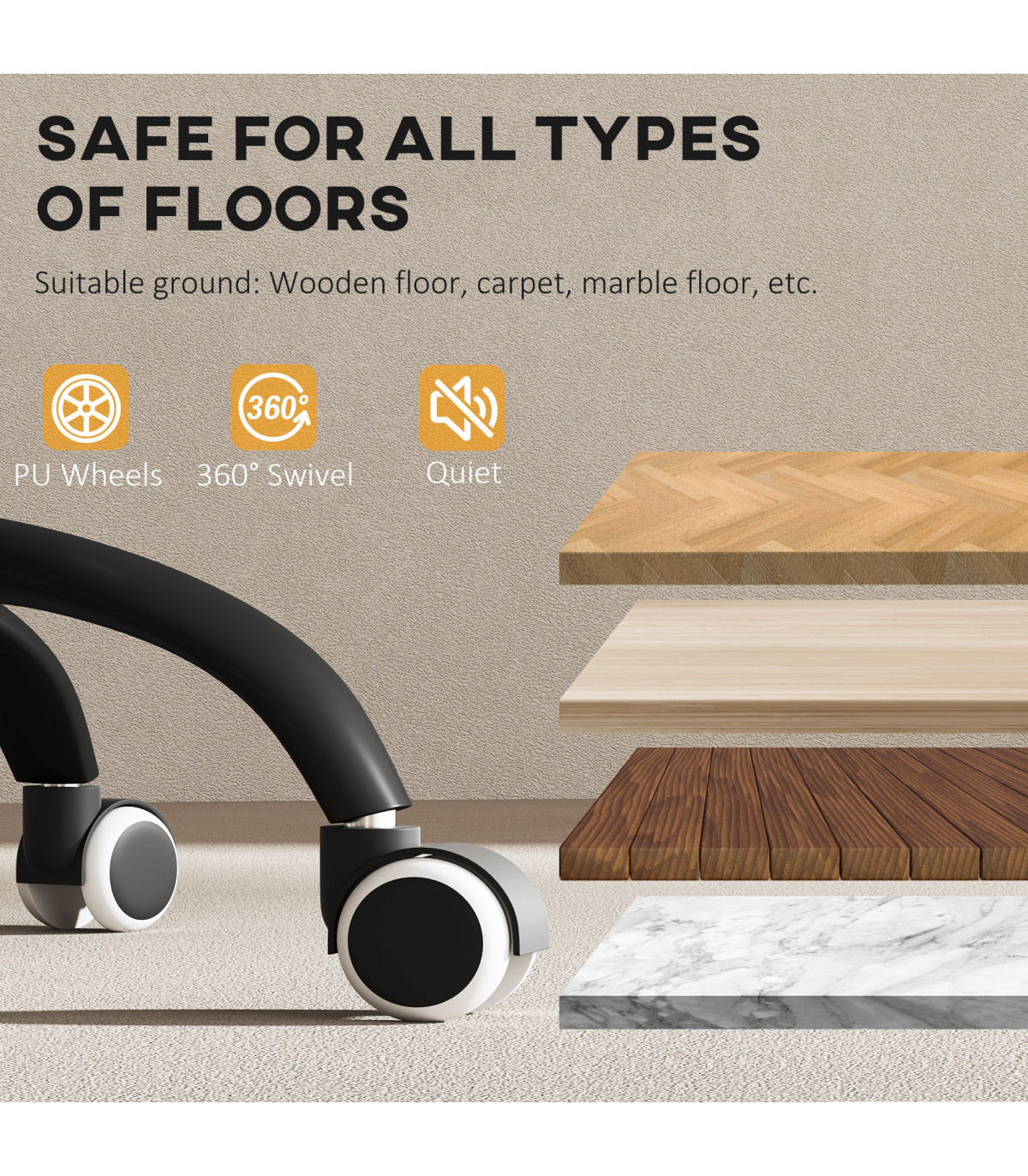● PU wheels glide smoothly on different flooring surfaces