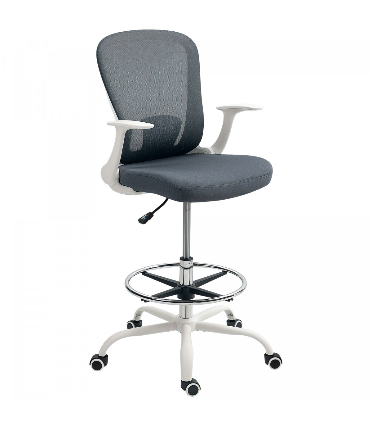 HOMCOM Mesh Draughtsman Chair, Ergonomic Drafting Chair, Grey
