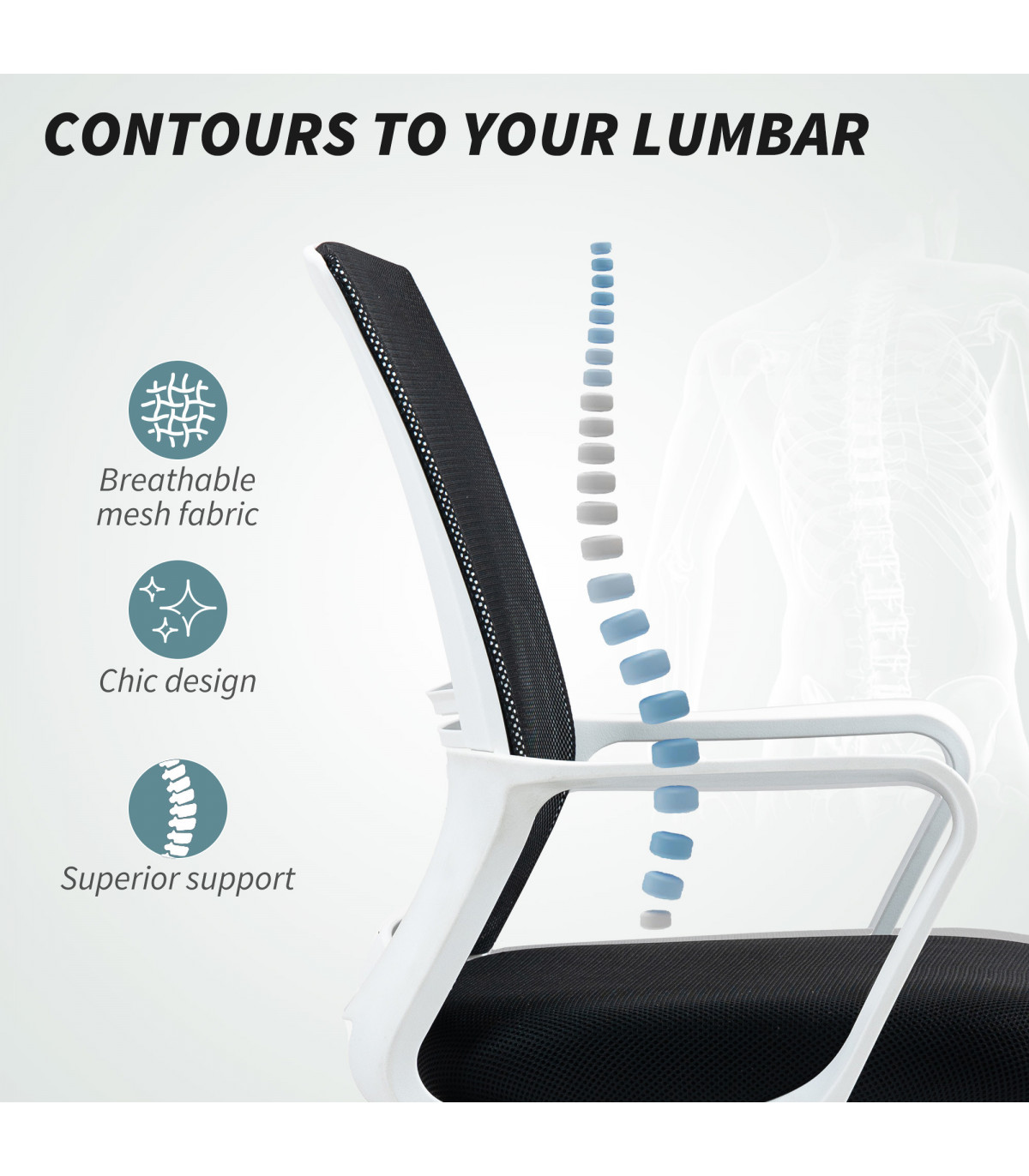 ● Breathable mesh cover paired with lumbar support for back relief