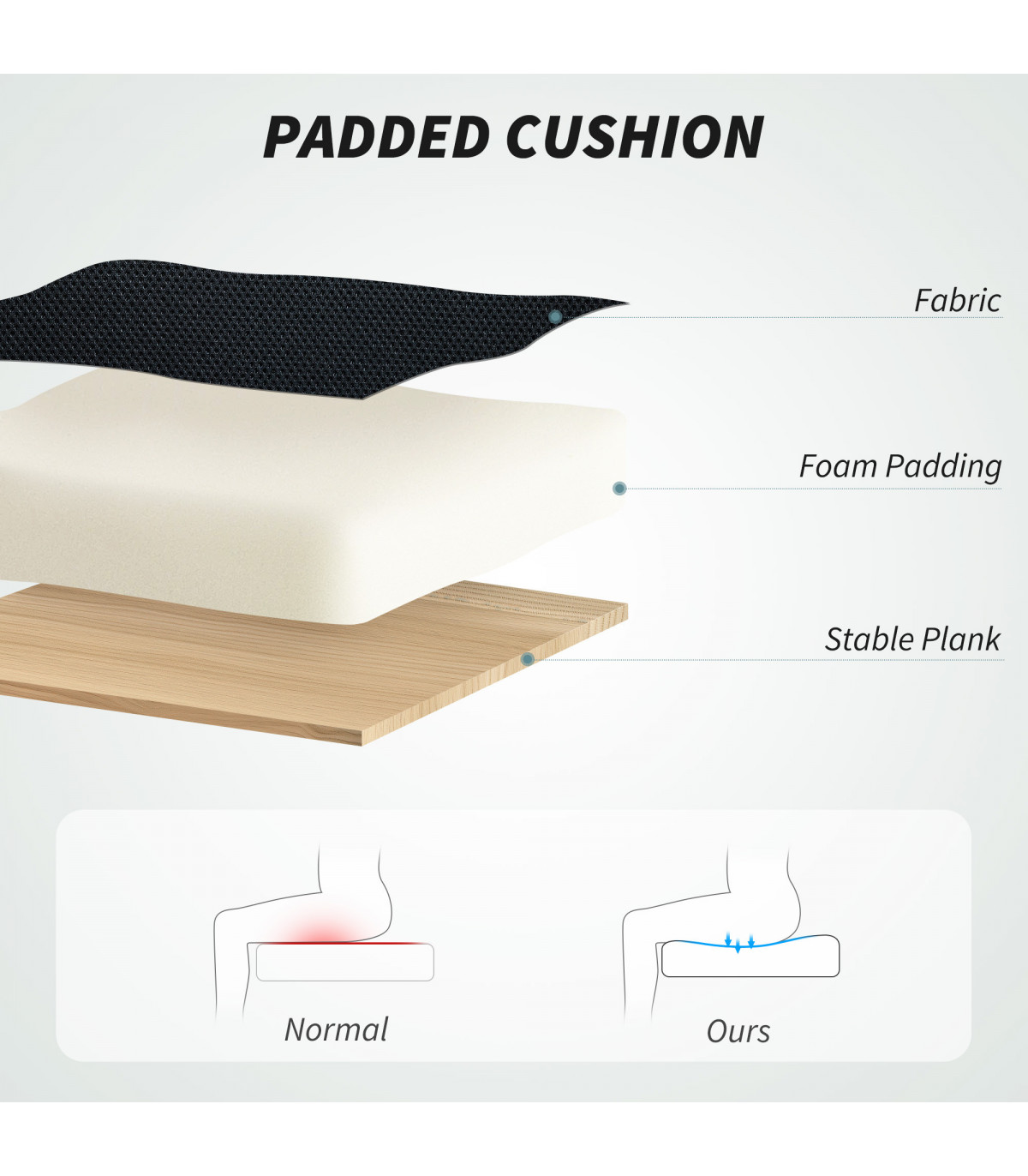 ● Mid-density foam padding offers cushioned, supportive seating