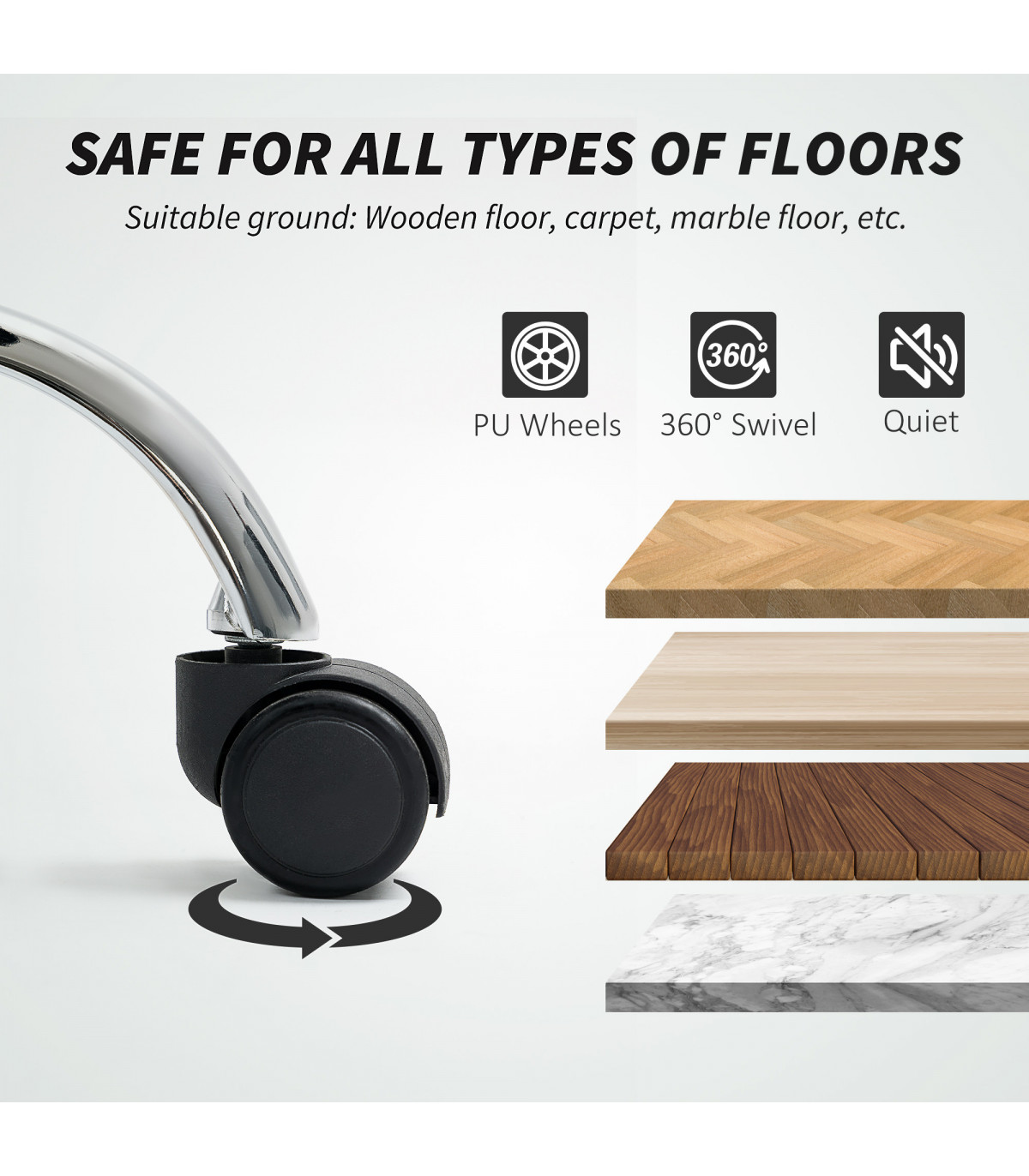 ● PU wheels glide smoothly on different flooring surfaces