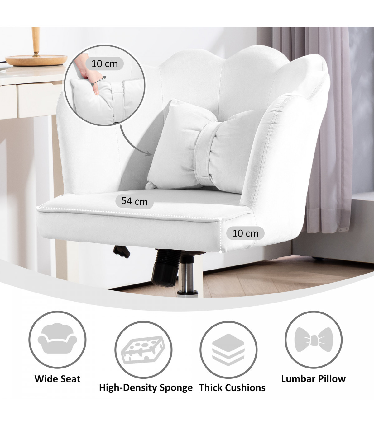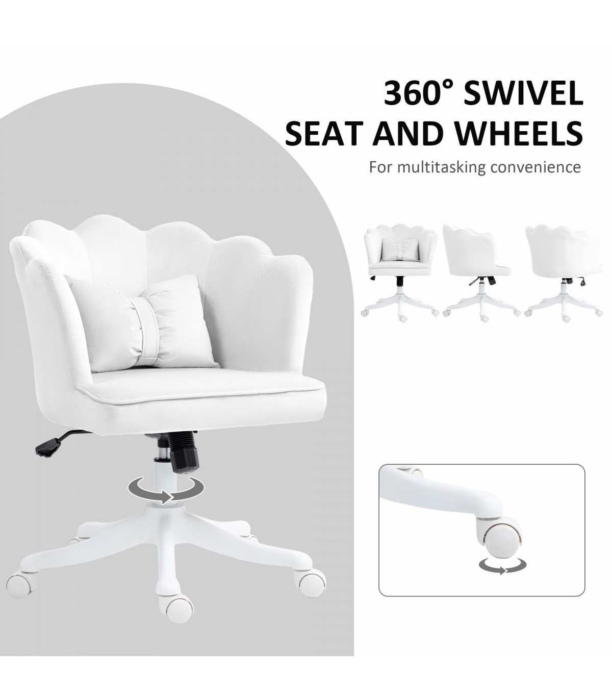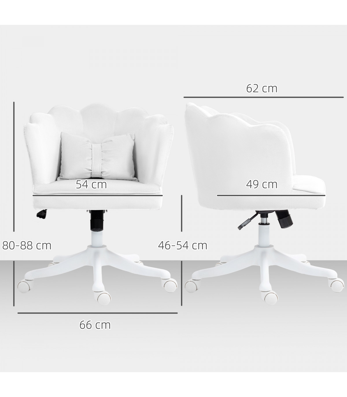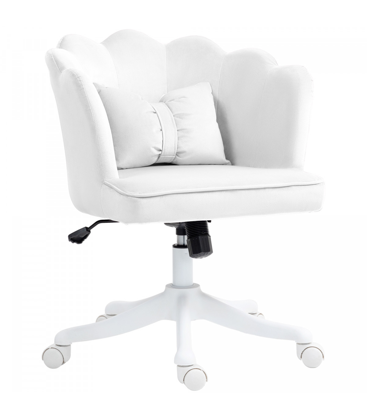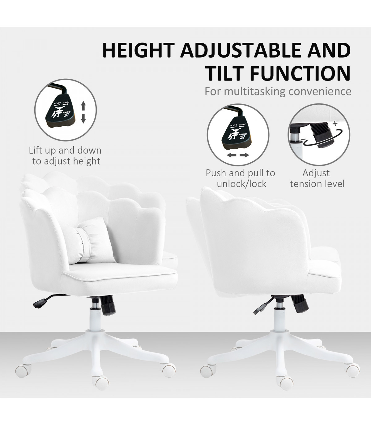 An elegant touch for the work day with this HOMCOM comfortable desk chair. The petal shaped back, paired with the velvet-feel upholstery creates a beautiful look. The inner padding and included pillow makes this a comfortable piece. Adjust the height between 46-54 cm - sit at a position you want. Complete with five wheels to move around easily.