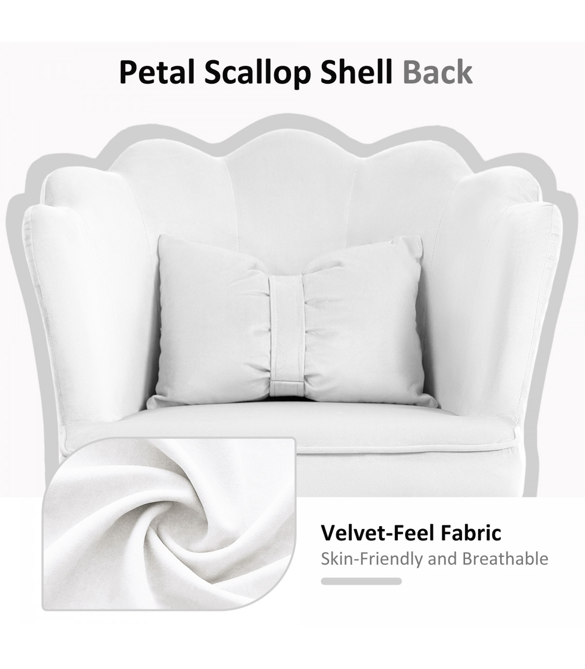● Petal scallop shell back and velvet-feel upholstery for an elegant look