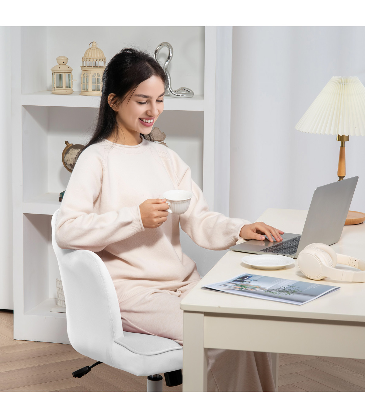 HOMCOM Armless Desk Chair Home Office Chair w/ Wide Seat Tilt Function White
